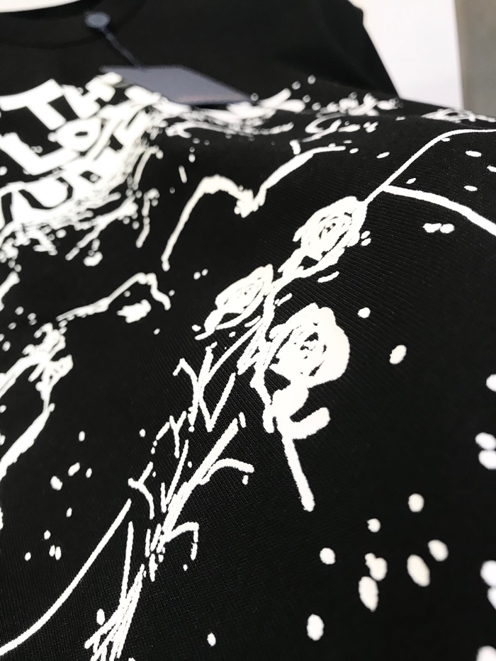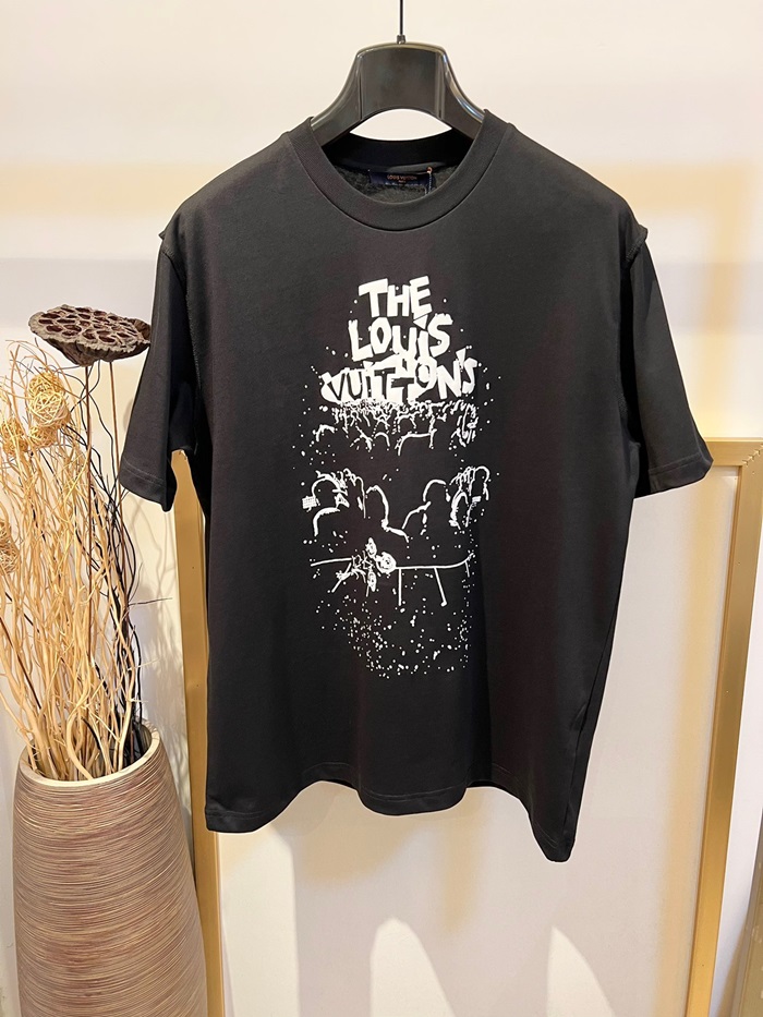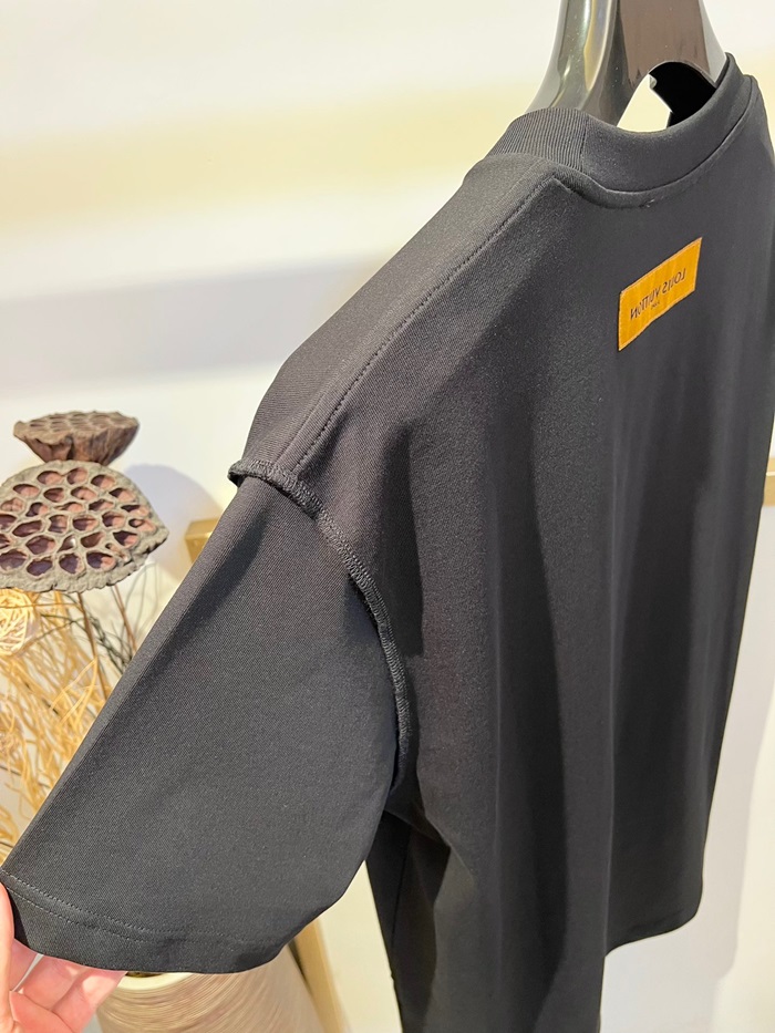 ルイヴィトンメンズブラッククルーネック半袖Tシャツv344