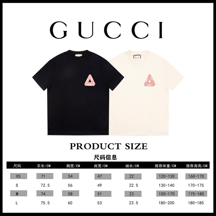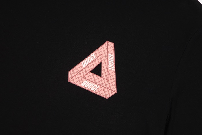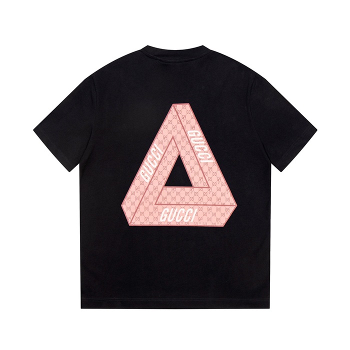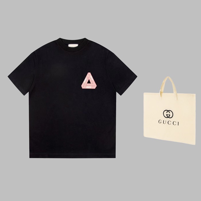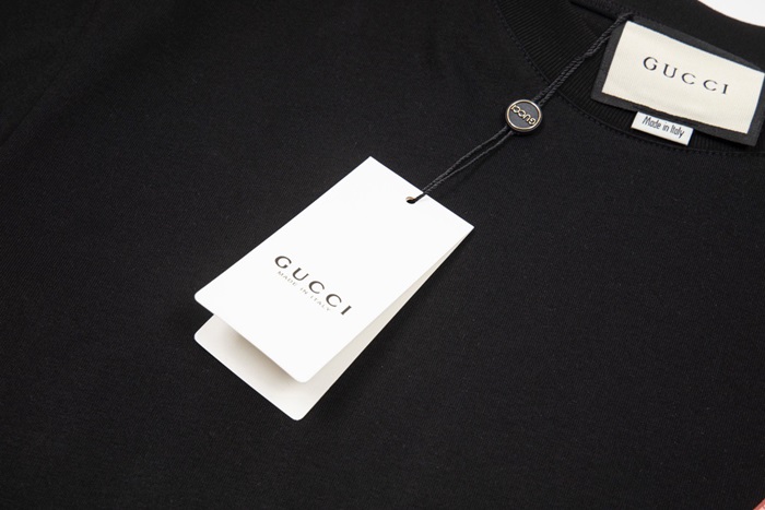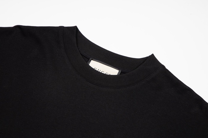 グッチユニセックスブラッククルーネック半袖Tシャツu180