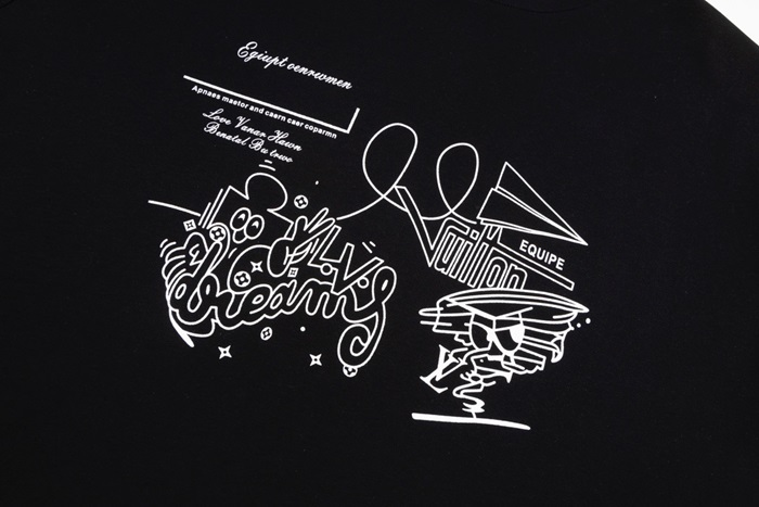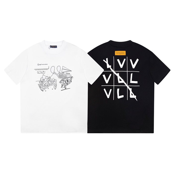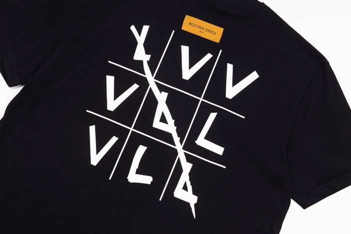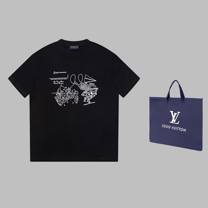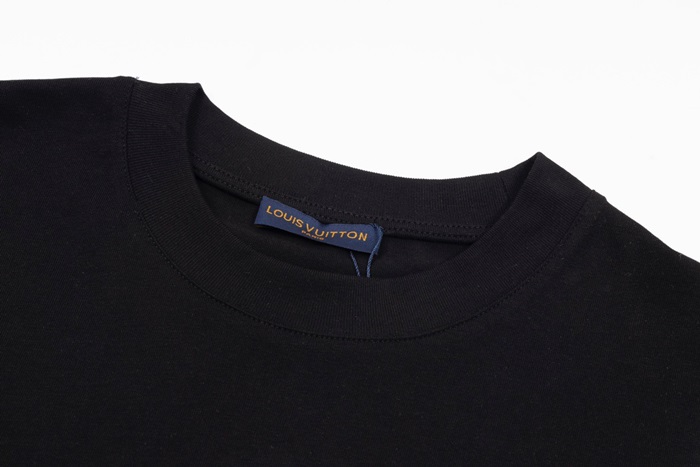 ルイヴィトンメンズブラッククルーネック半袖Tシャツv345