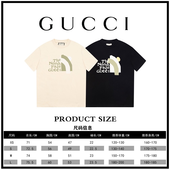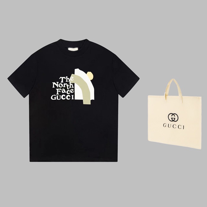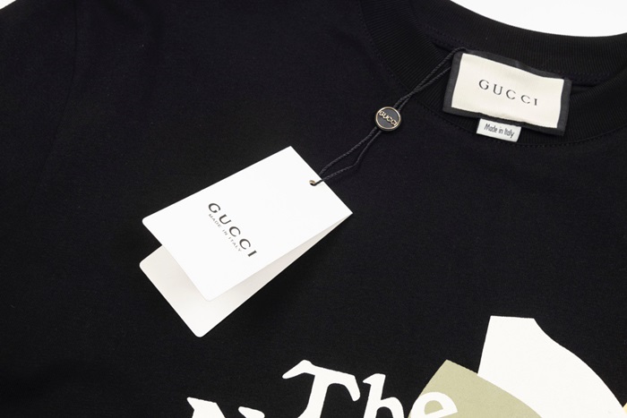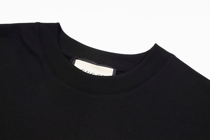 グッチユニセックスブラッククルーネック半袖Tシャツu183