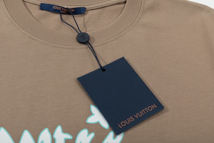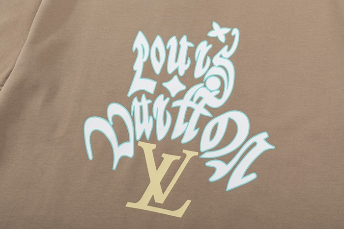 ルイヴィトンメンズキャメルクルーネック半袖Tシャツv352