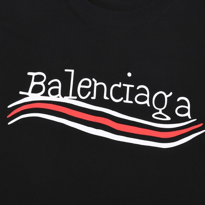 バレンシアガメンズクルーネックブラック半袖Tシャツa136