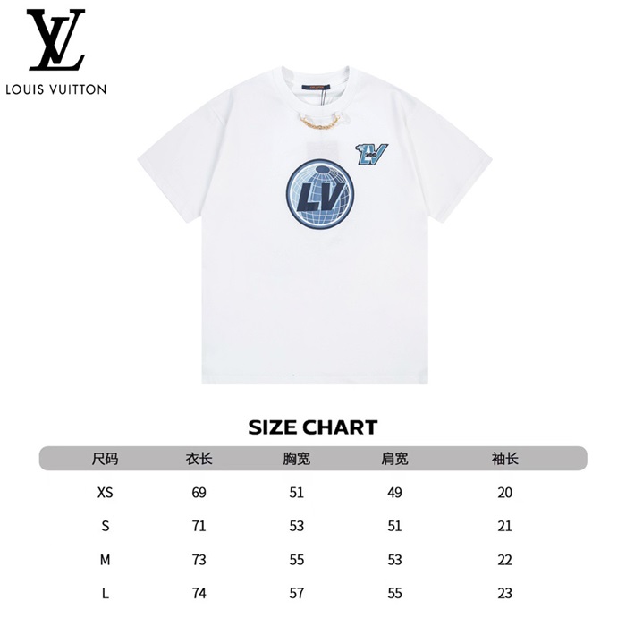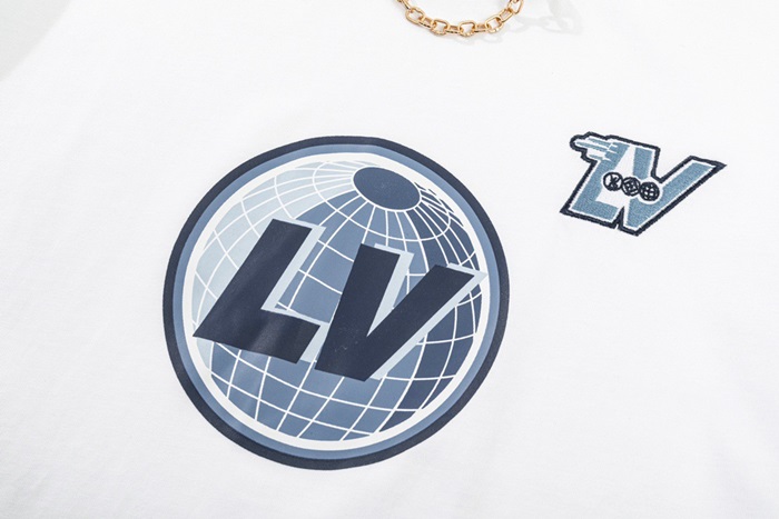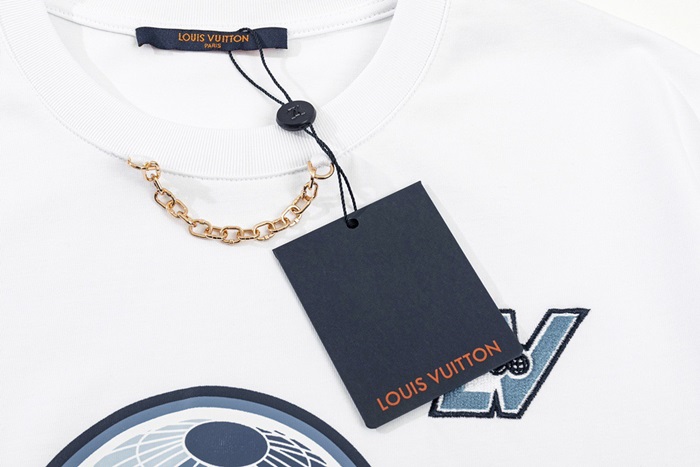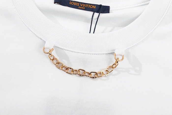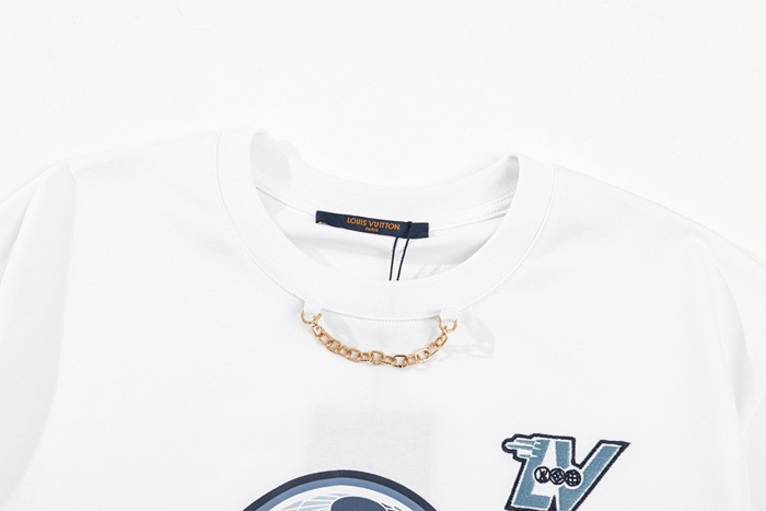 ルイヴィトンメンズホワイトクルーネック半袖Tシャツv355