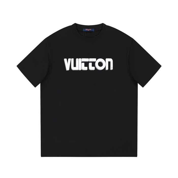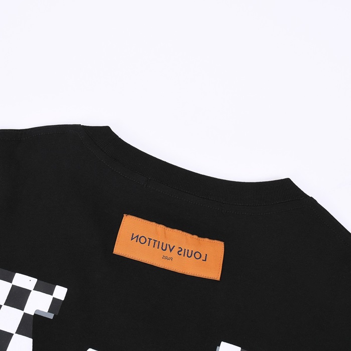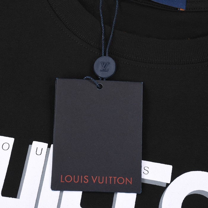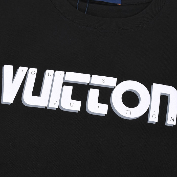 ルイヴィトンメンズブラッククルーネック半袖Tシャツv360
