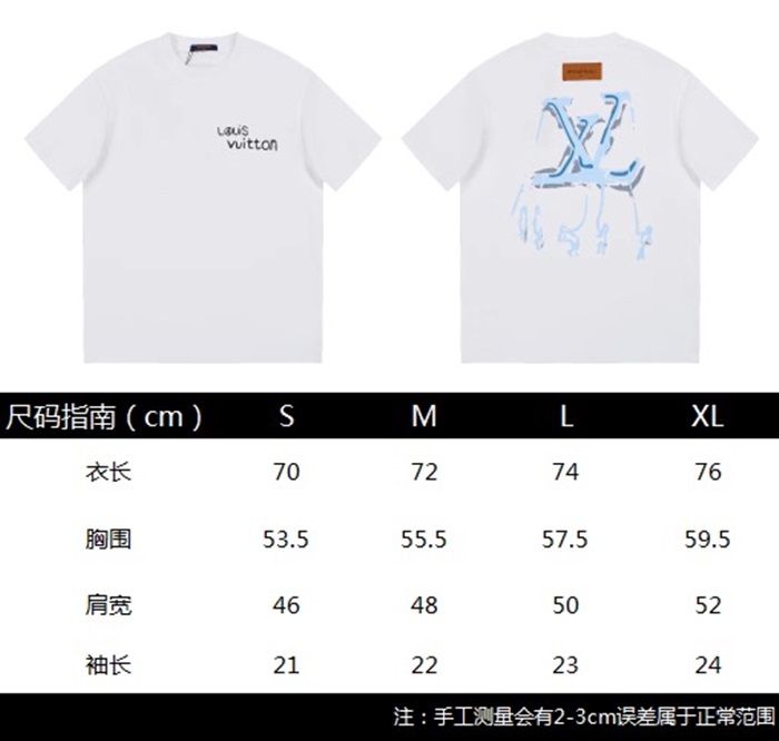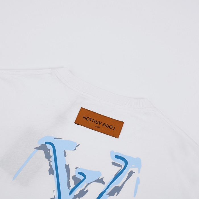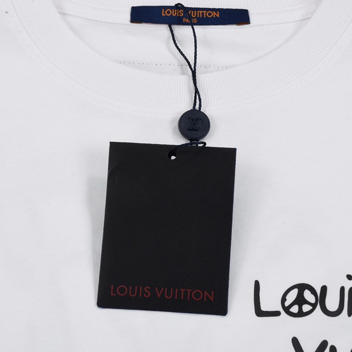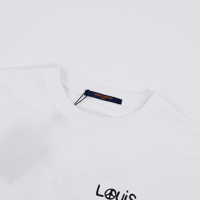 ルイヴィトンメンズホワイトクルーネック半袖Tシャツv361
