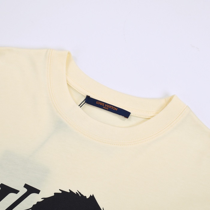 ルイヴィトンメンズアイボリークルーネック半袖Tシャツv365