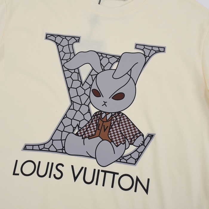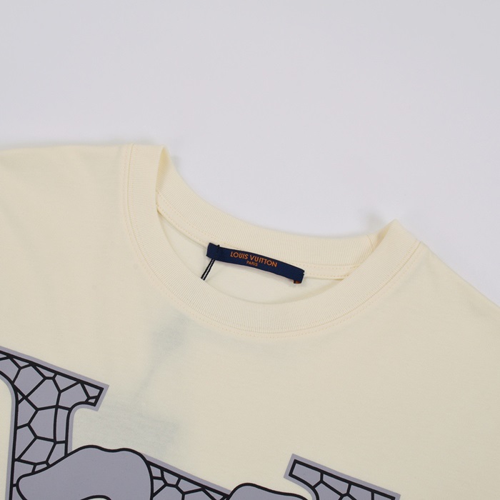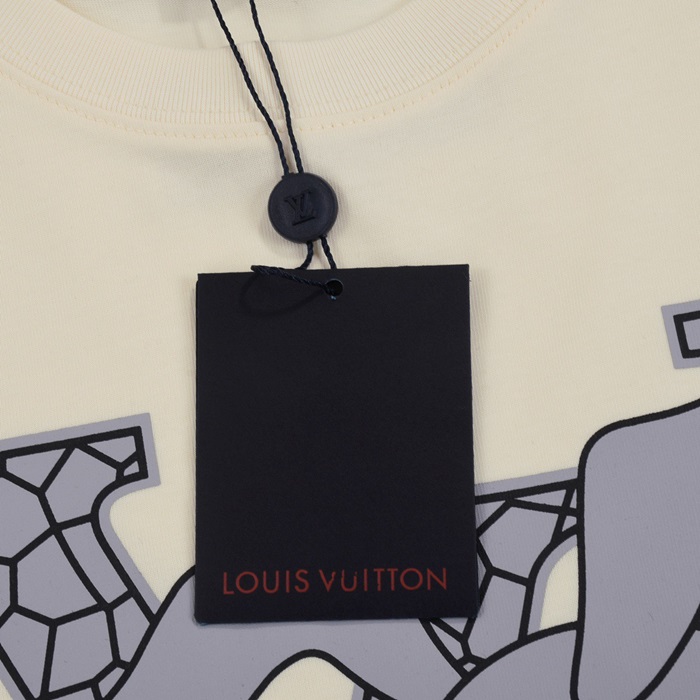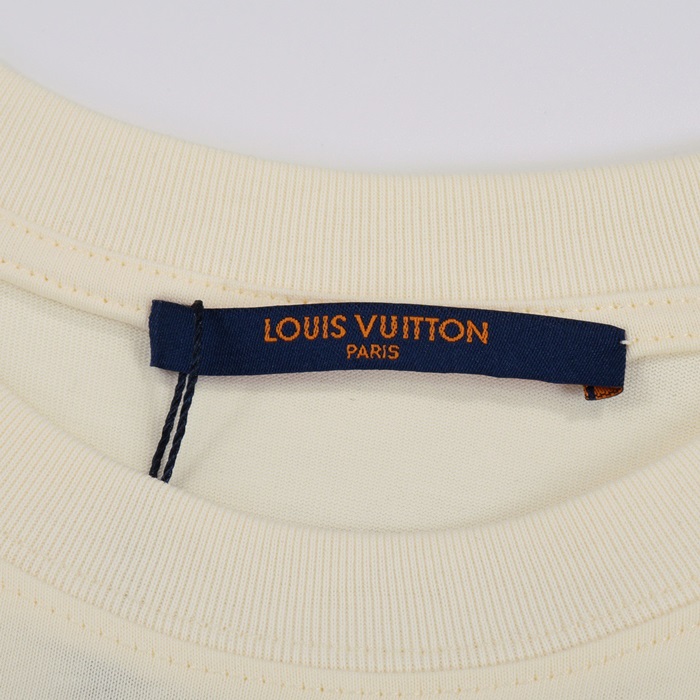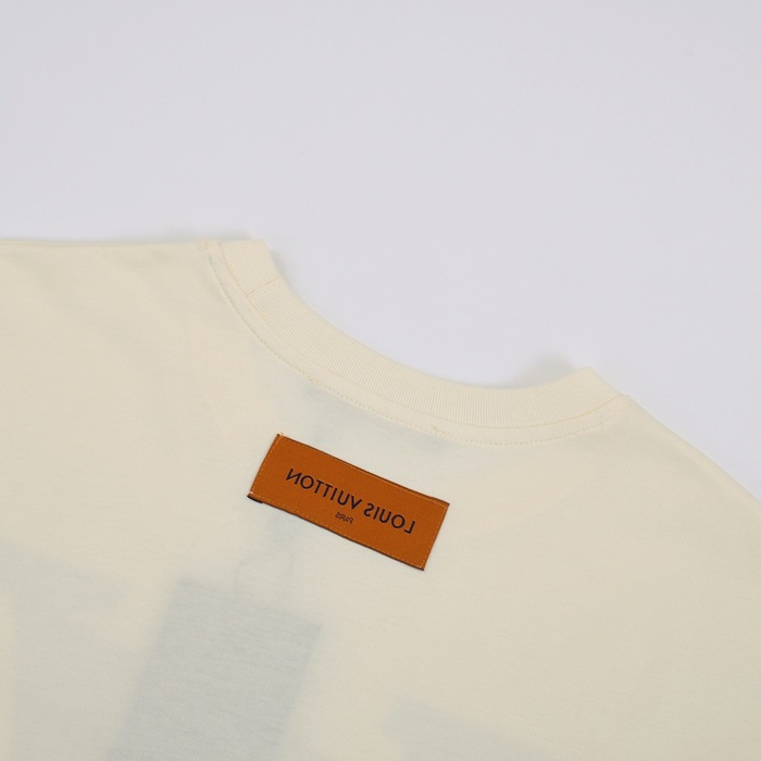 ルイヴィトンメンズアイボリークルーネック半袖Tシャツv367