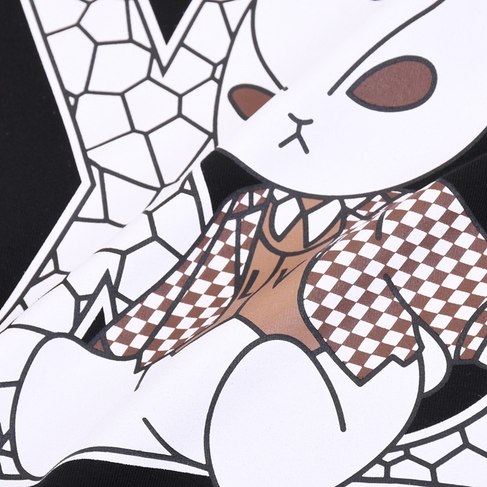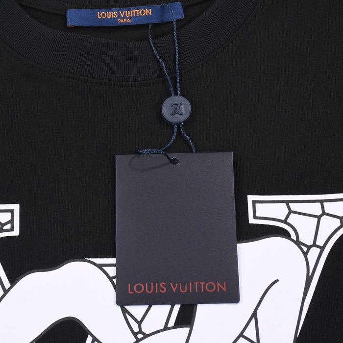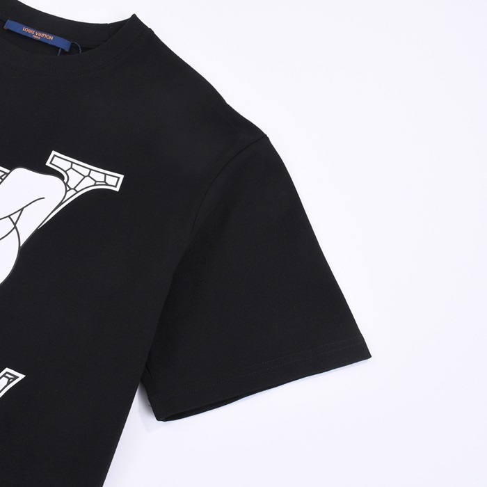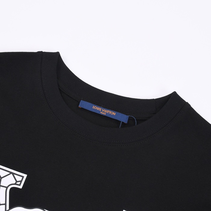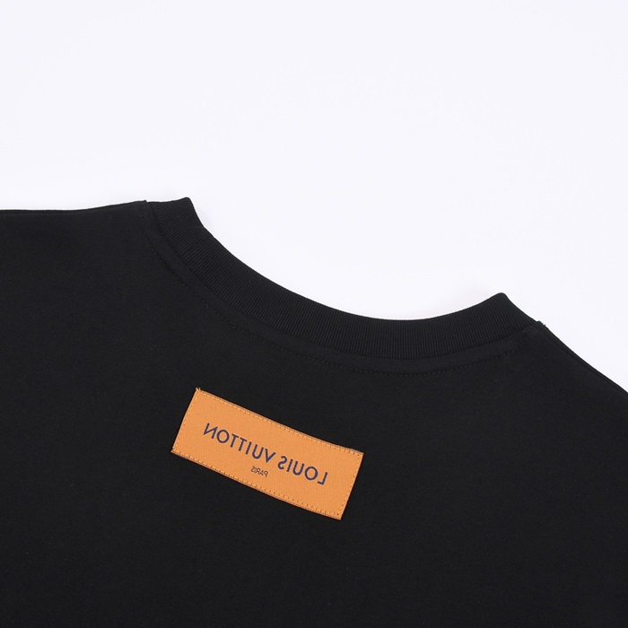ルイヴィトンメンズブラッククルーネック半袖Tシャツv368