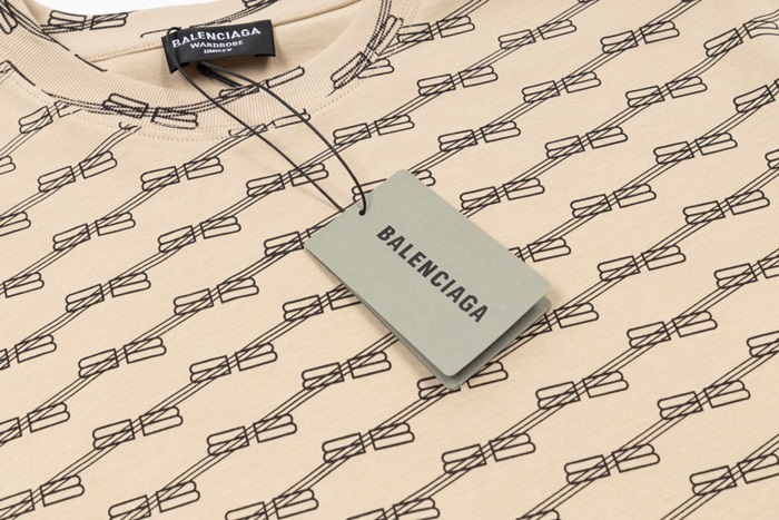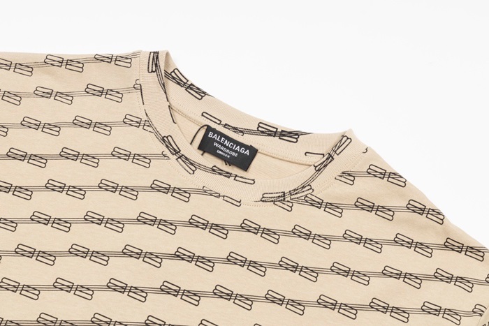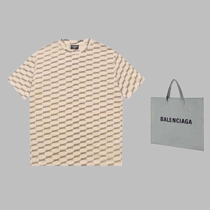 バレンシアガメンズクルーネックベージュ半袖Tシャツa140