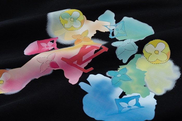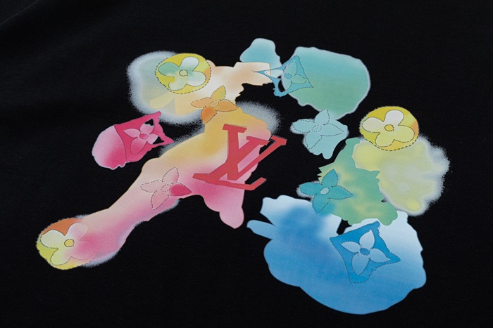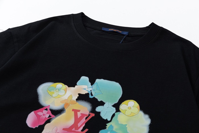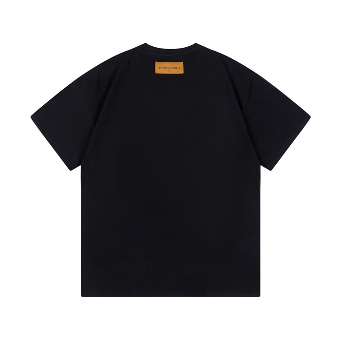 ルイヴィトンメンズブラッククルーネック半袖Tシャツv374