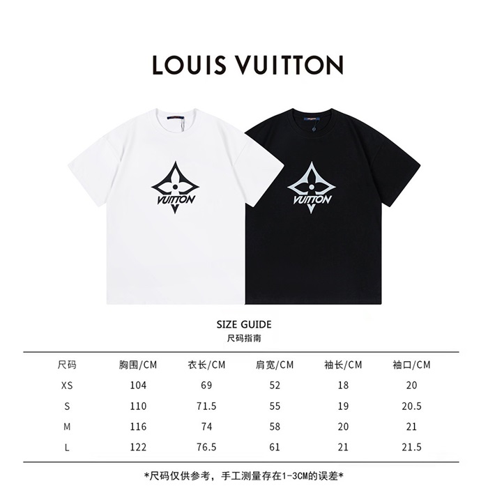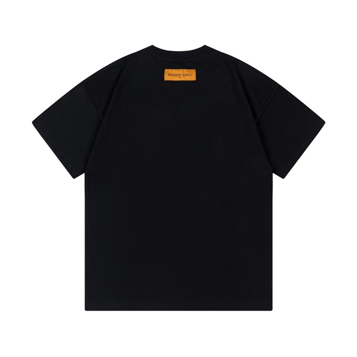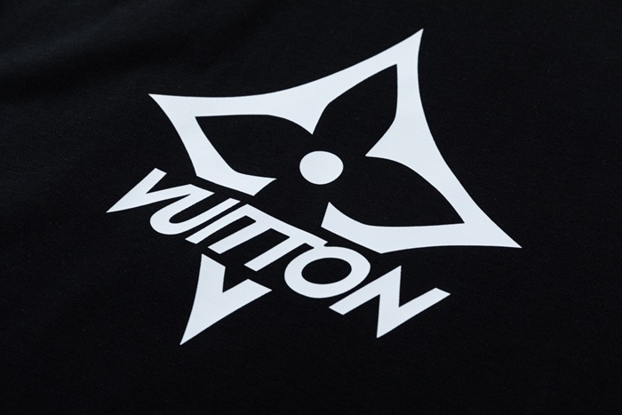ルイヴィトンメンズブラッククルーネック半袖Tシャツv376