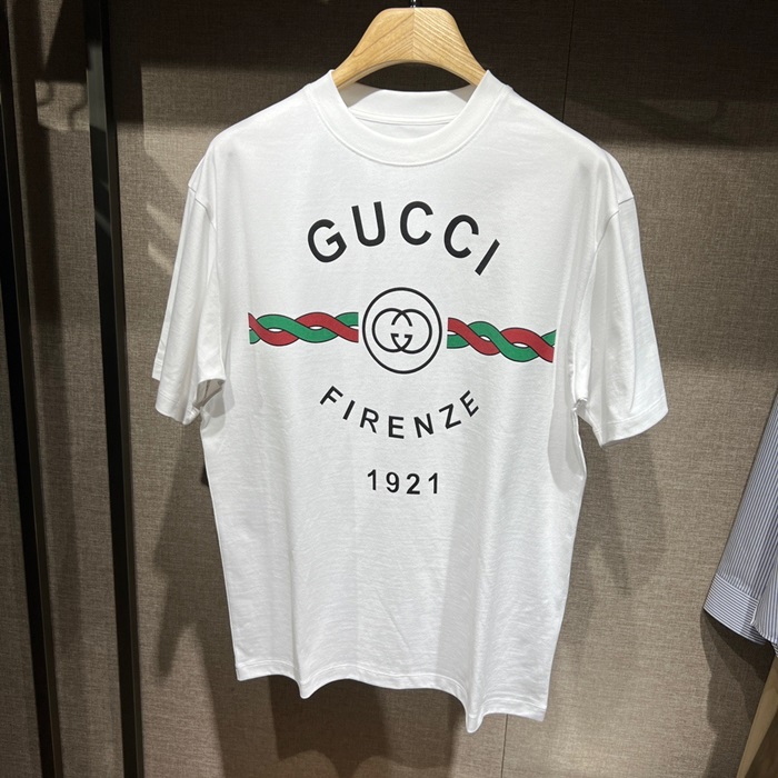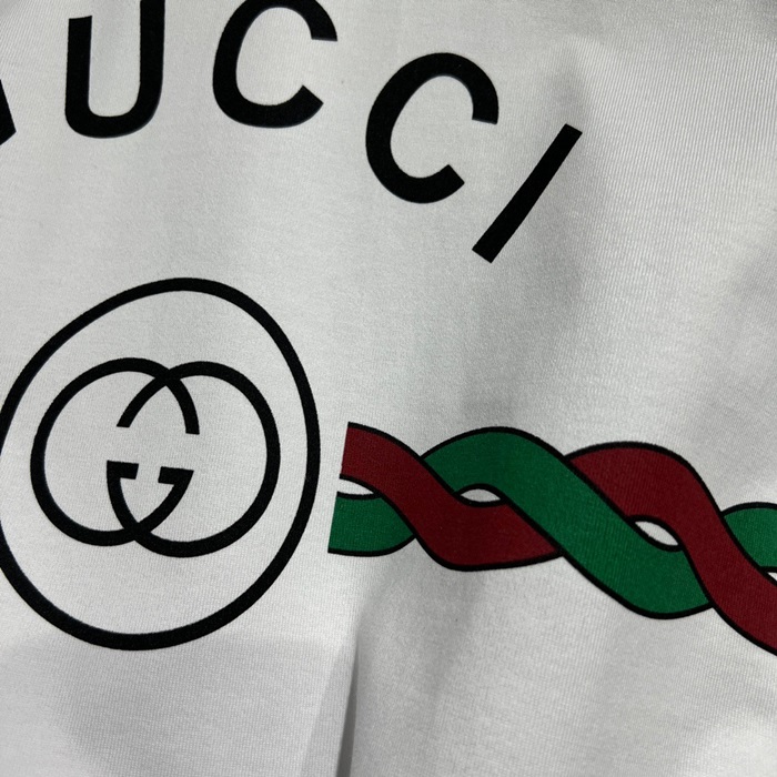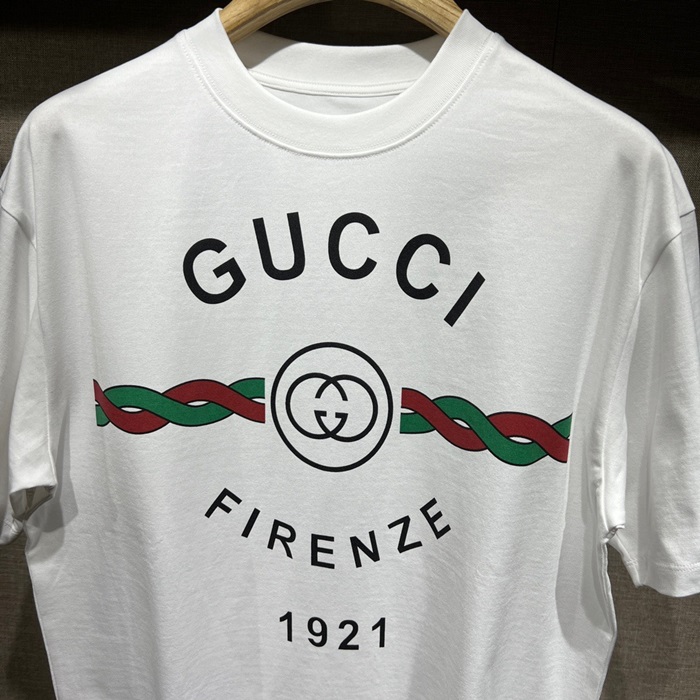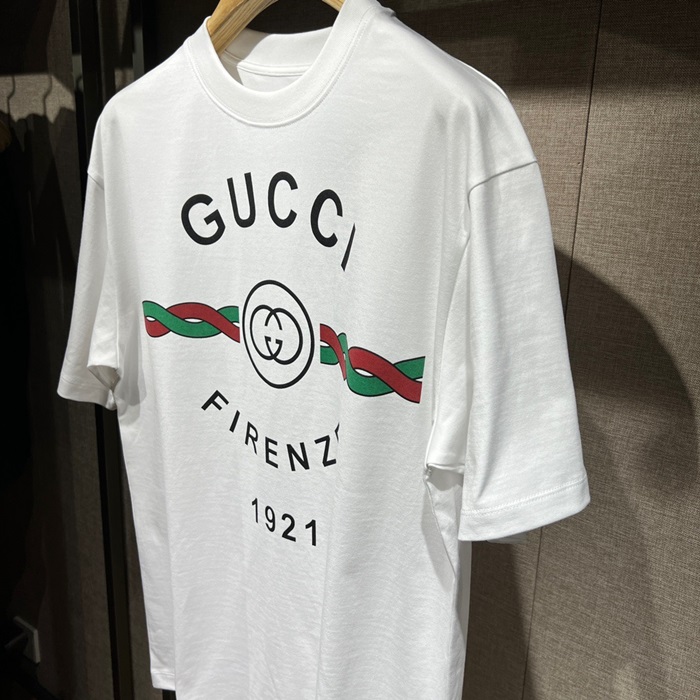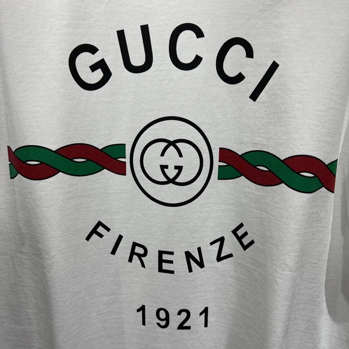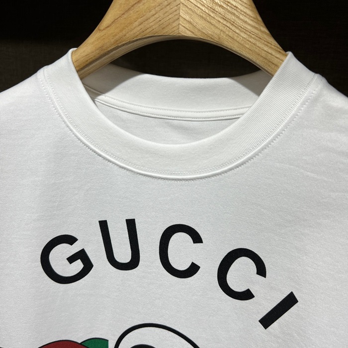 グッチユニセックスホワイトクルーネック半袖Tシャツu189