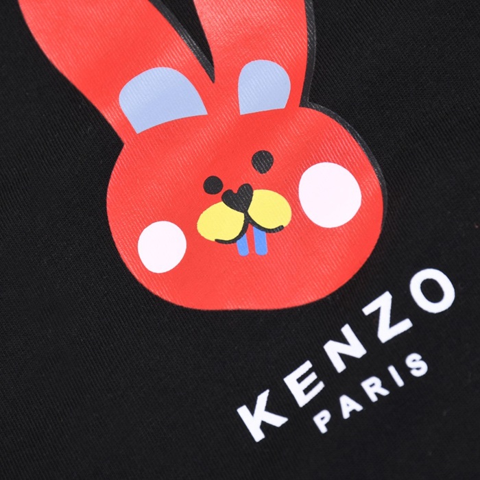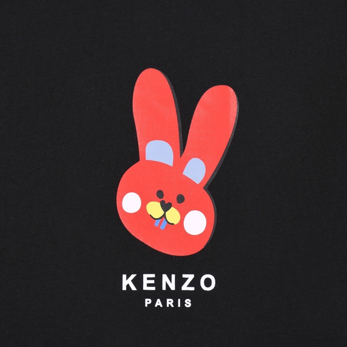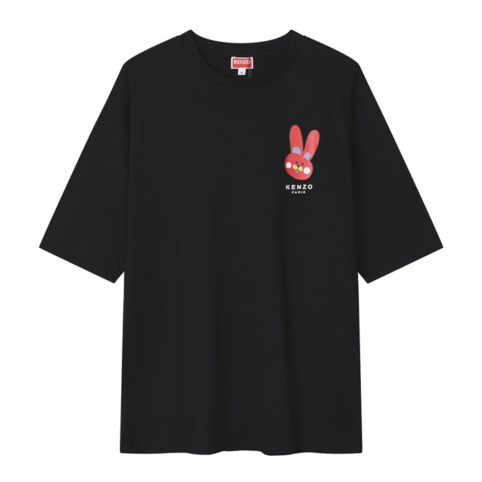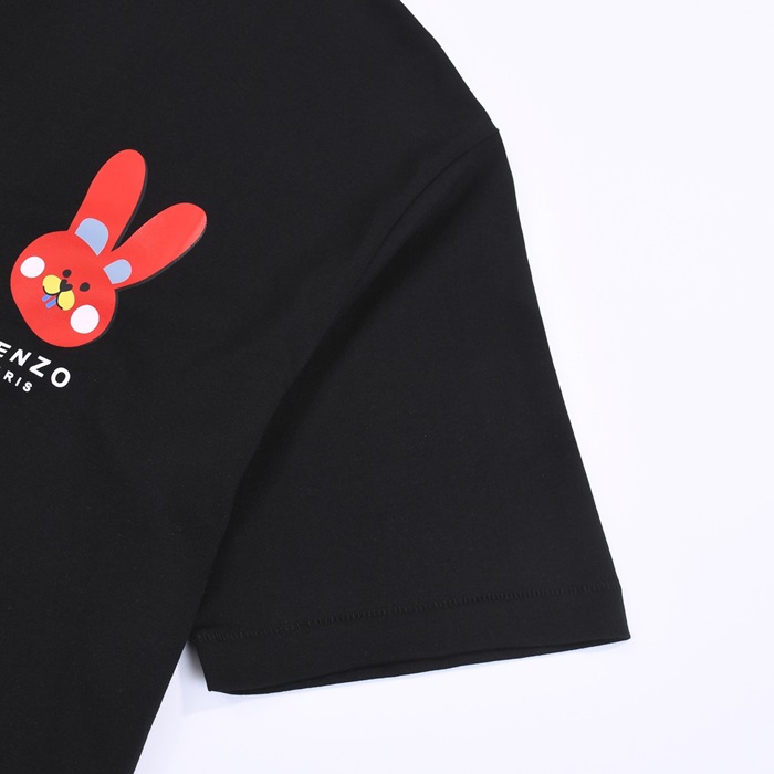 ケンゾーユニセックスブラッククルーネック半袖Tシャツn205