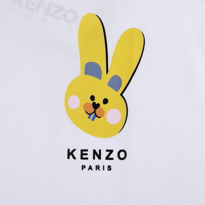 ケンゾーユニセックスホワイトクルーネック半袖Tシャツn207