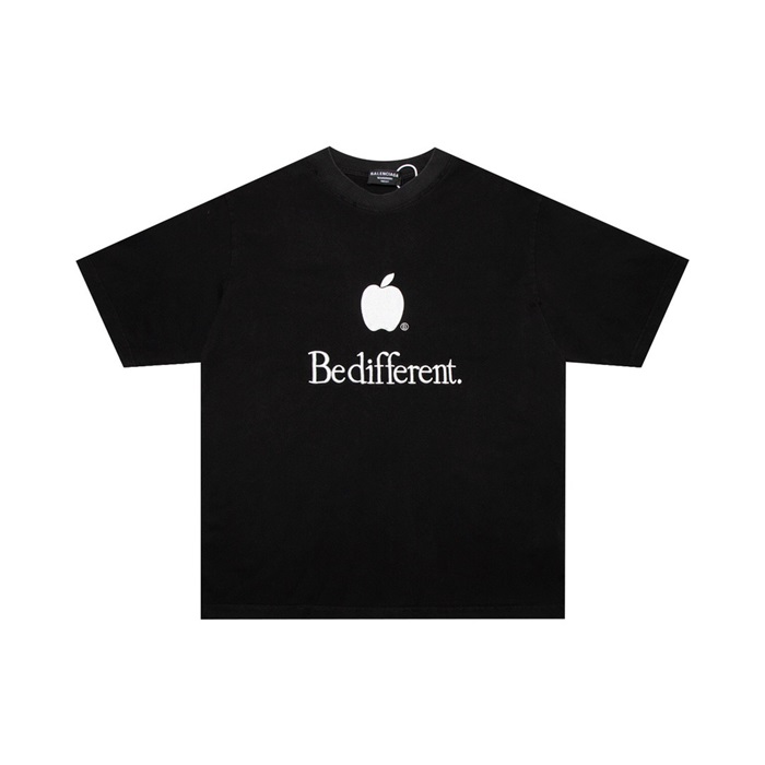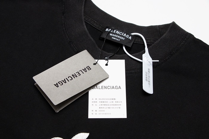 バレンシアガメンズクルーネックブラック半袖Tシャツa141
