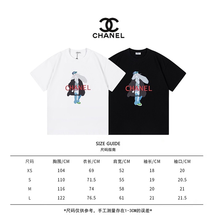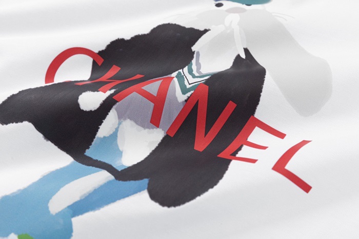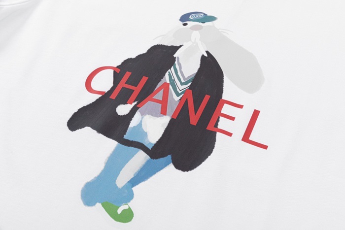 シャネルユニセックスクルーネックホワイト半袖Tシャツh47