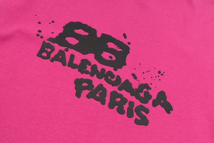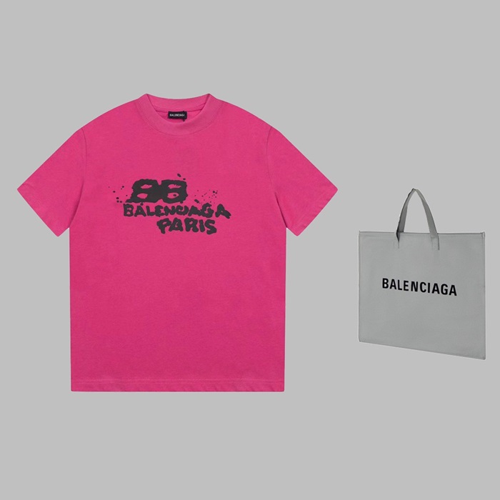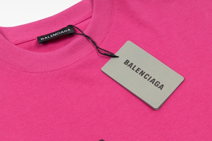 バレンシアガユニセックスクルーネックピンク半袖Tシャツa146
