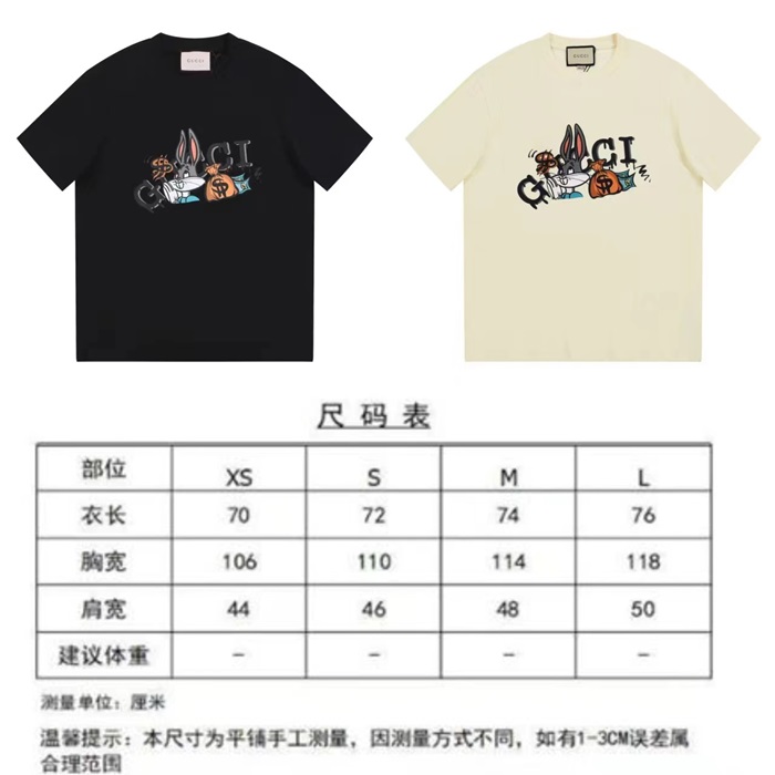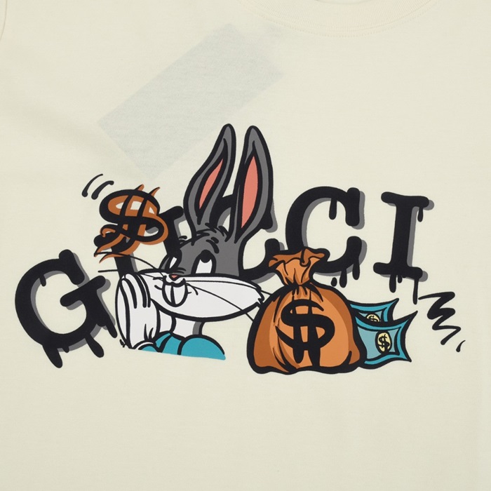 グッチユニセックスアイボリークルーネック半袖Tシャツu190