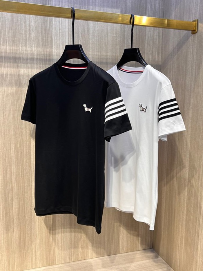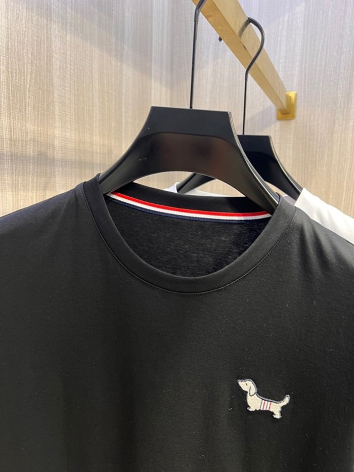 トムブラウンメンズクルーネックブラック半袖Tシャツh32