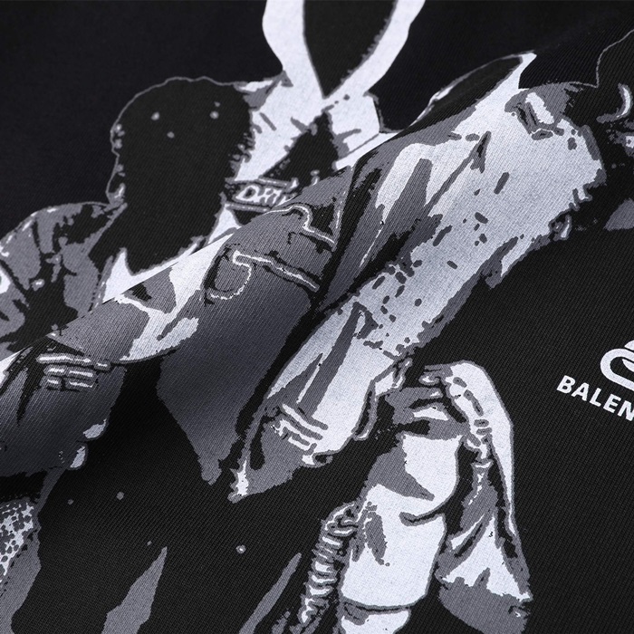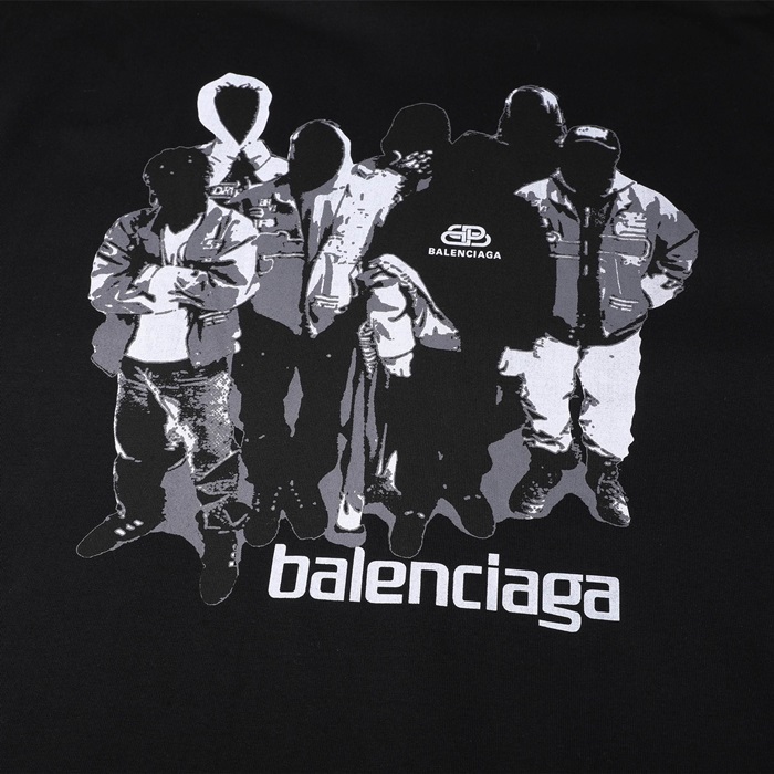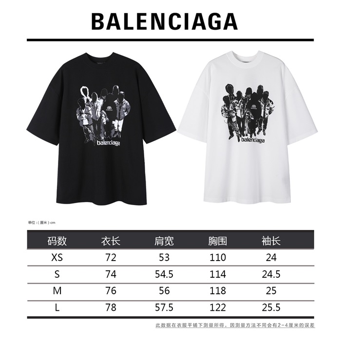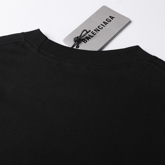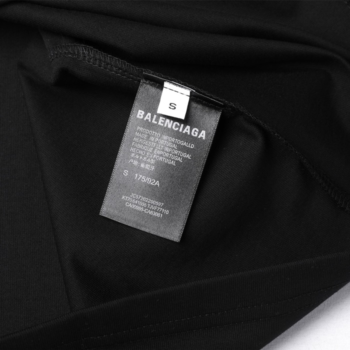 バレンシアガユニセックスクルーネックブラック半袖Tシャツa150