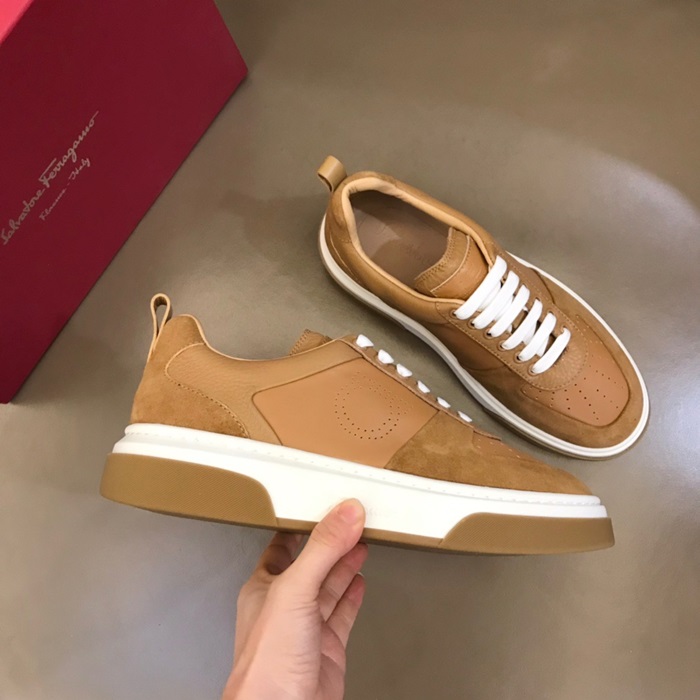 サルヴァトーレフェラガモメンズキャメルスニーカーr382