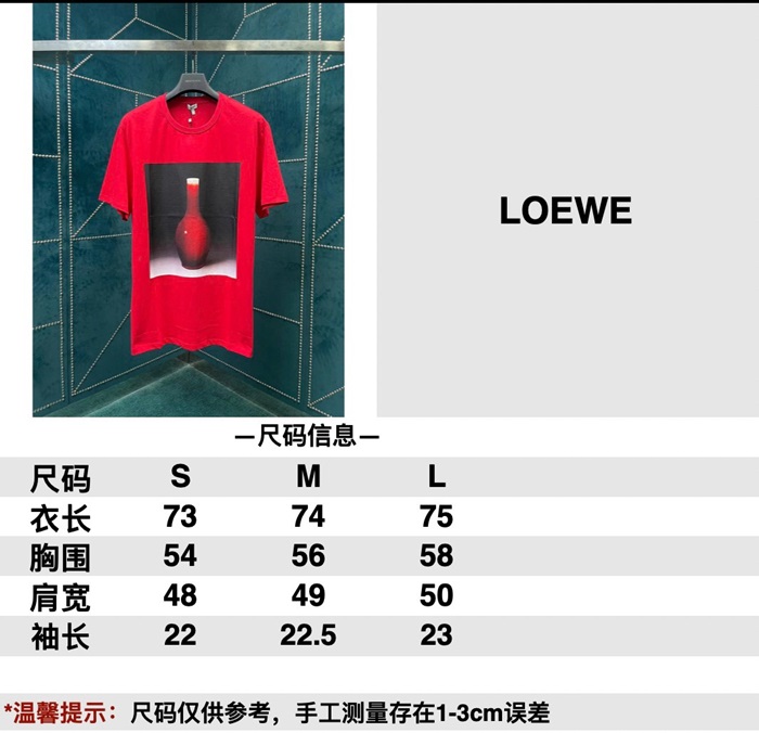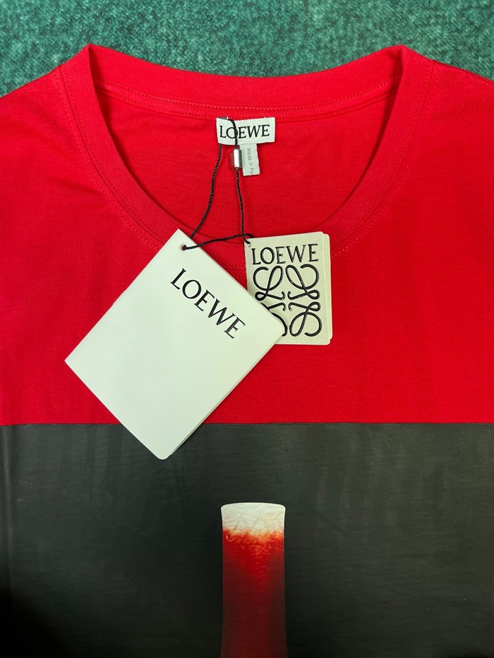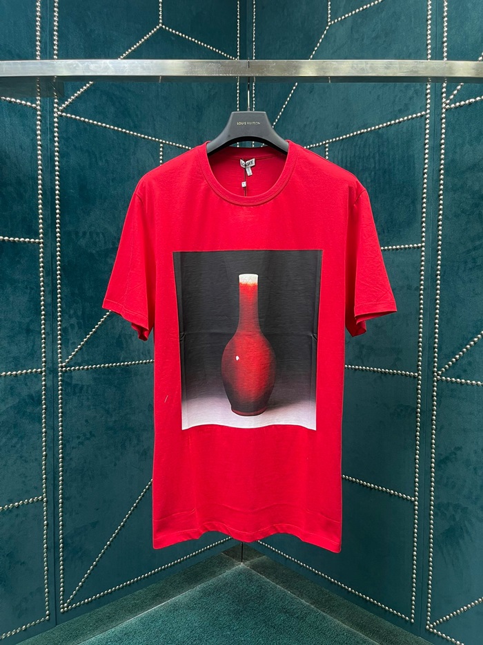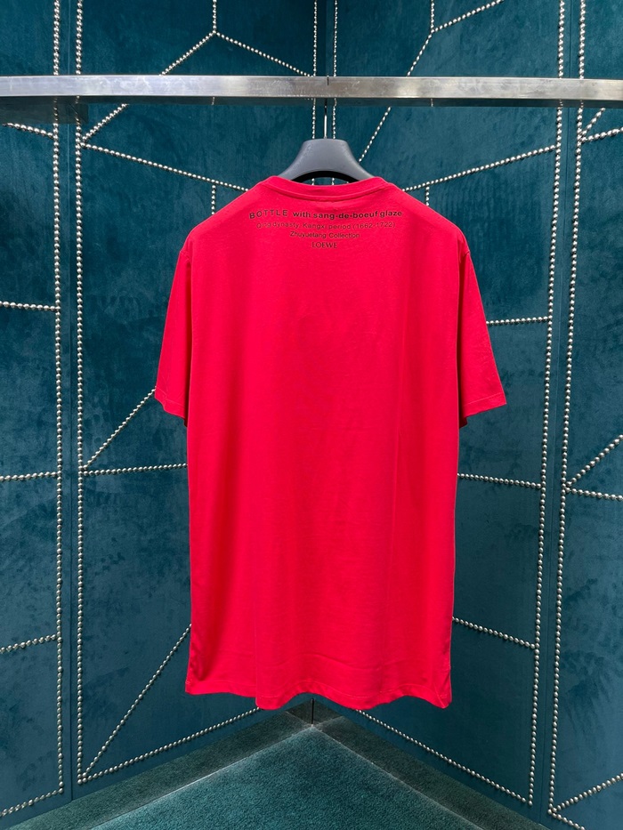 ロエベユニセックスイニシャルレッド半袖Tシャツe687