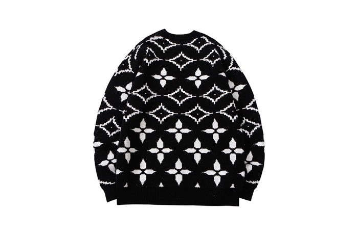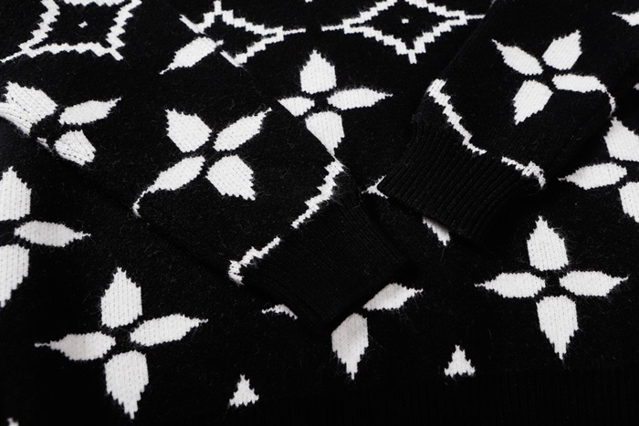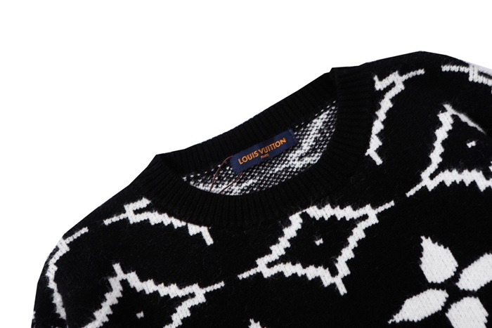 ルイヴィトンメンズブラッククルーネックニットv408