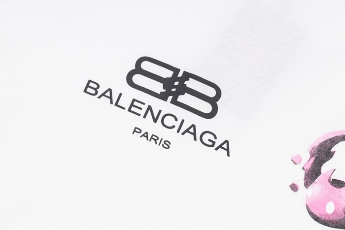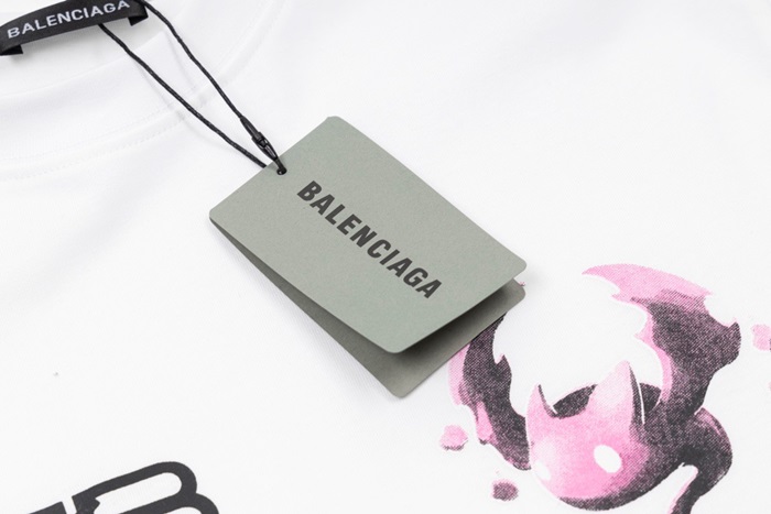バレンシアガユニセックスクルーネックホワイト半袖Tシャツa152