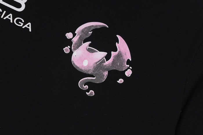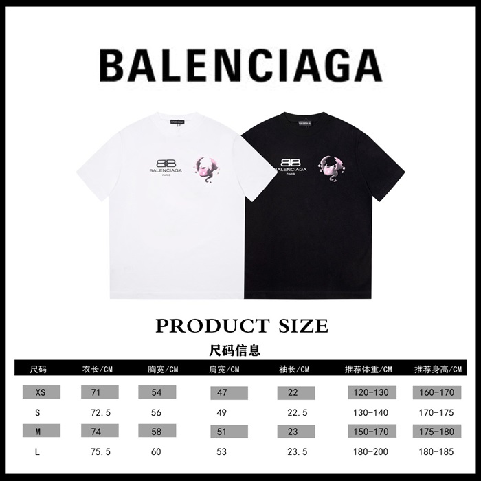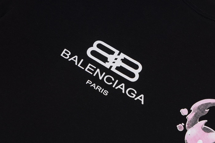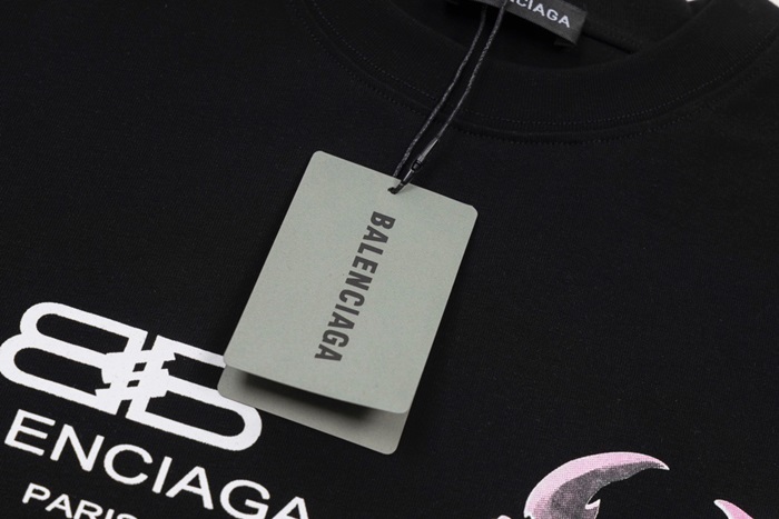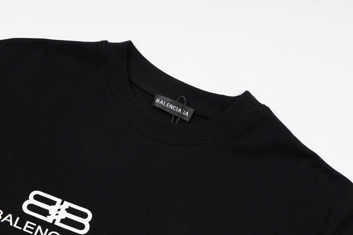 バレンシアガユニセックスクルーネックブラック半袖Tシャツa153