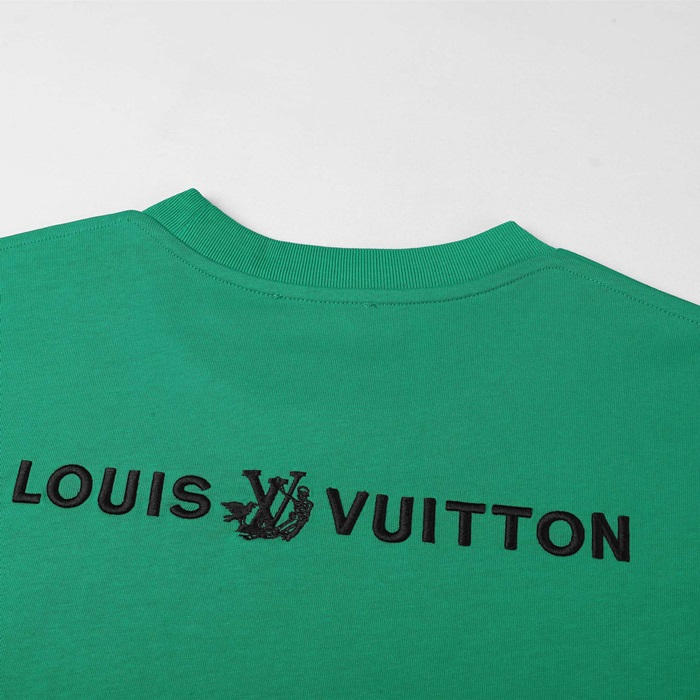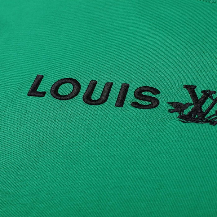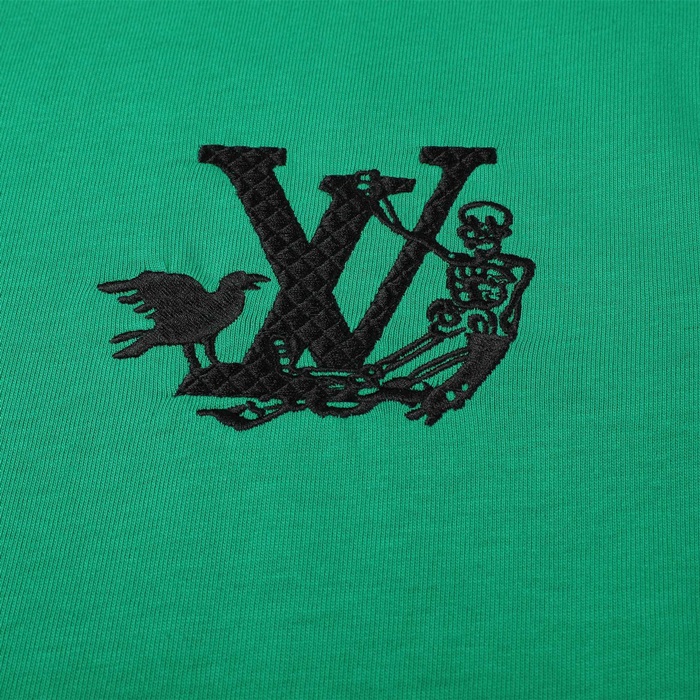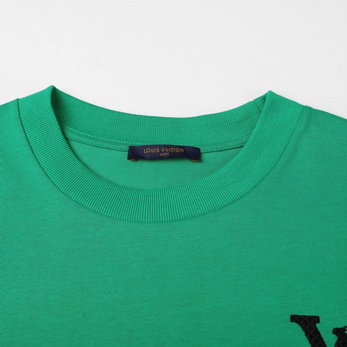 ルイヴィトンメンズグリーンクルーネック半袖Tシャツv419