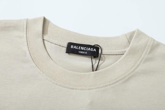 バレンシアガユニセックスクルーネックベージュ半袖Tシャツa154