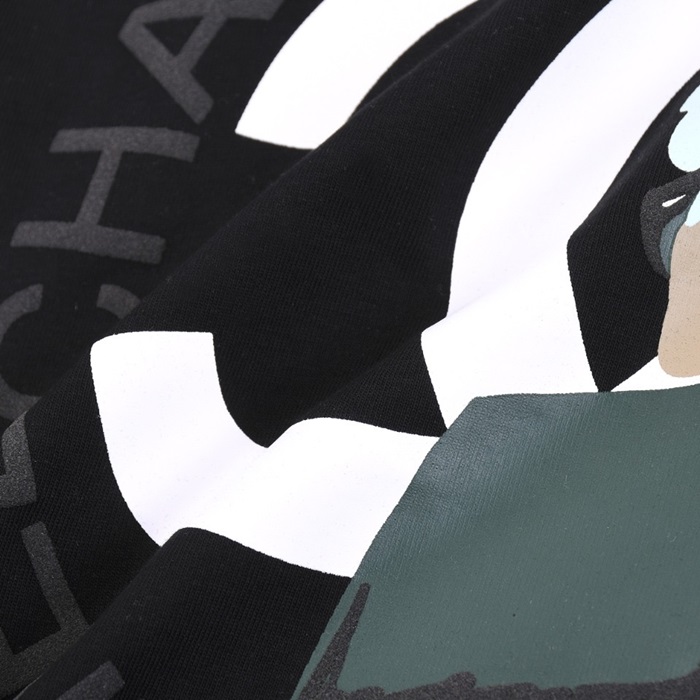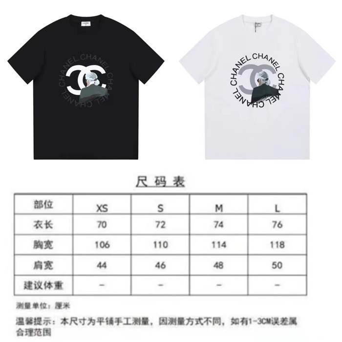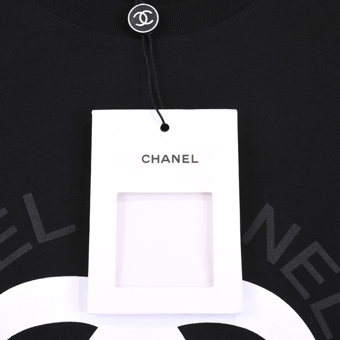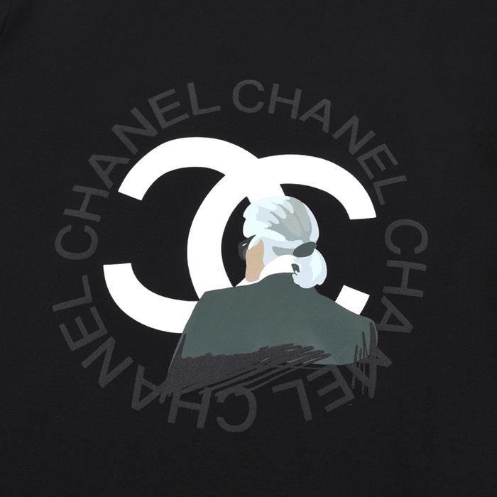 シャネルユニセックスクルーネックブラック半袖Tシャツh49