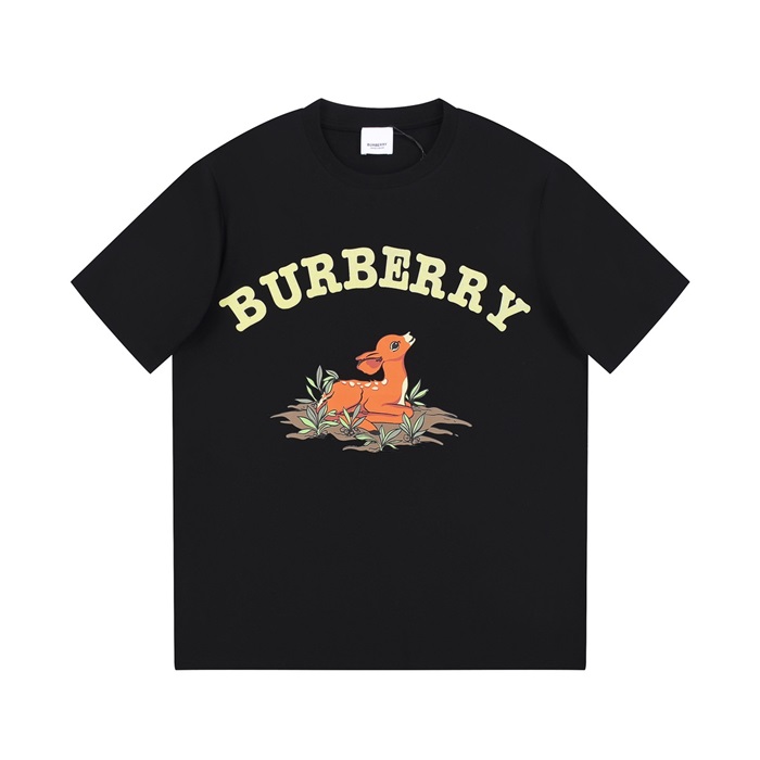 バーバリーメンズブラッククルーネック半袖Tシャツu73