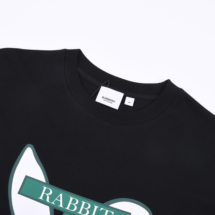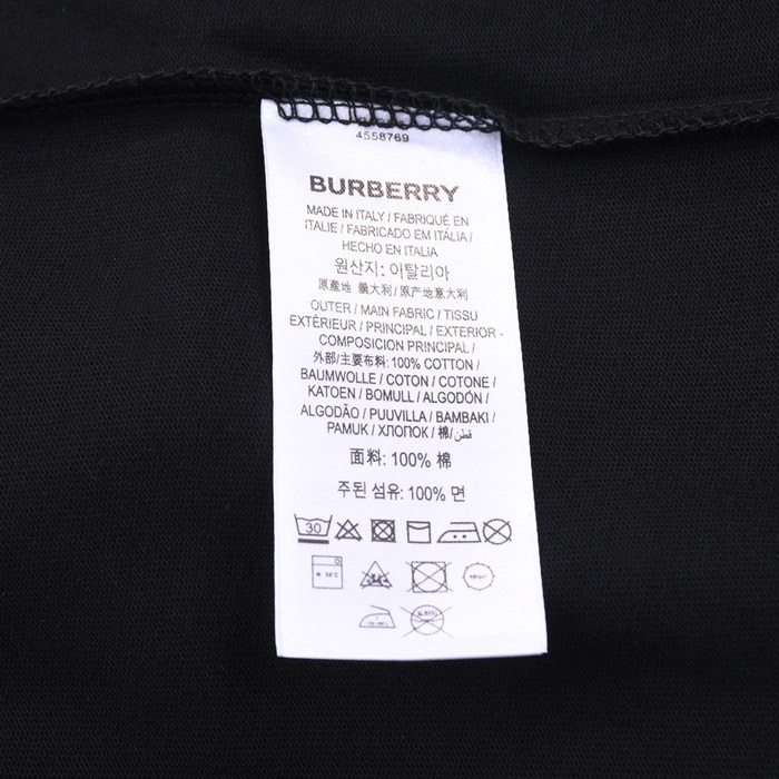 バーバリーメンズブラッククルーネック半袖Tシャツu75