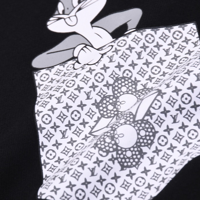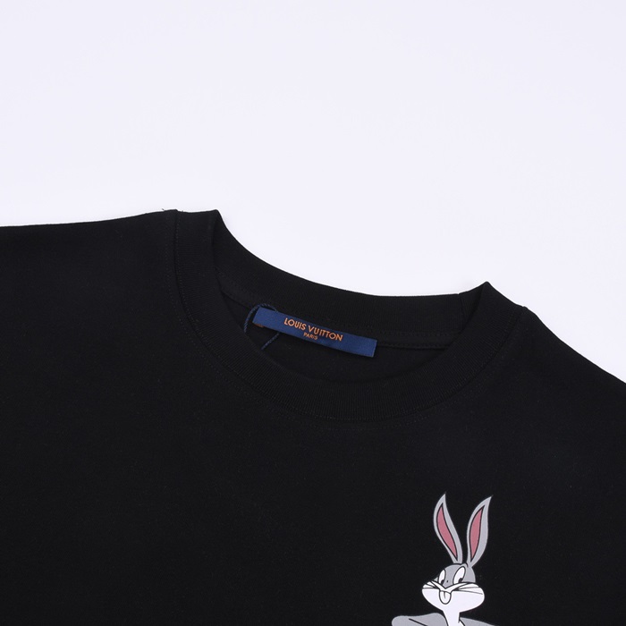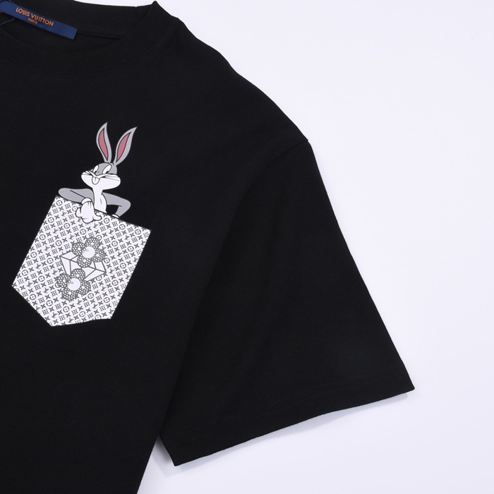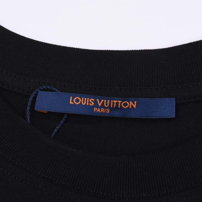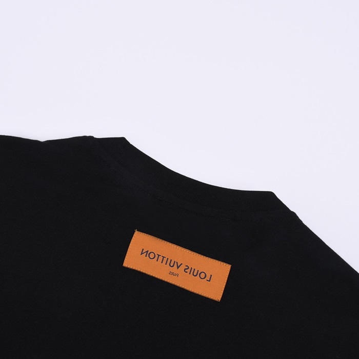 ルイヴィトンメンズブラッククルーネック半袖Tシャツv426