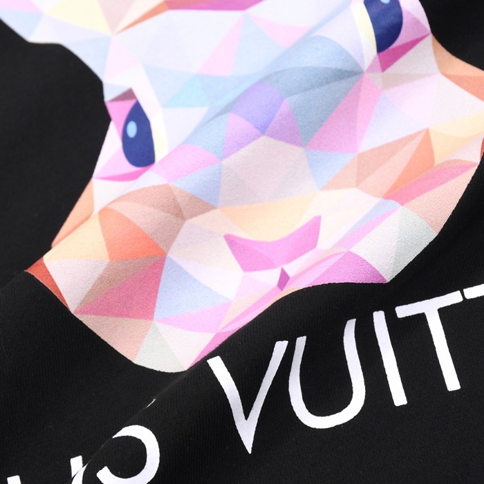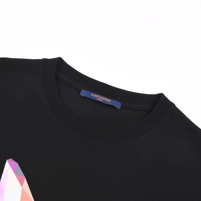 ルイヴィトンメンズブラッククルーネック半袖Tシャツv427