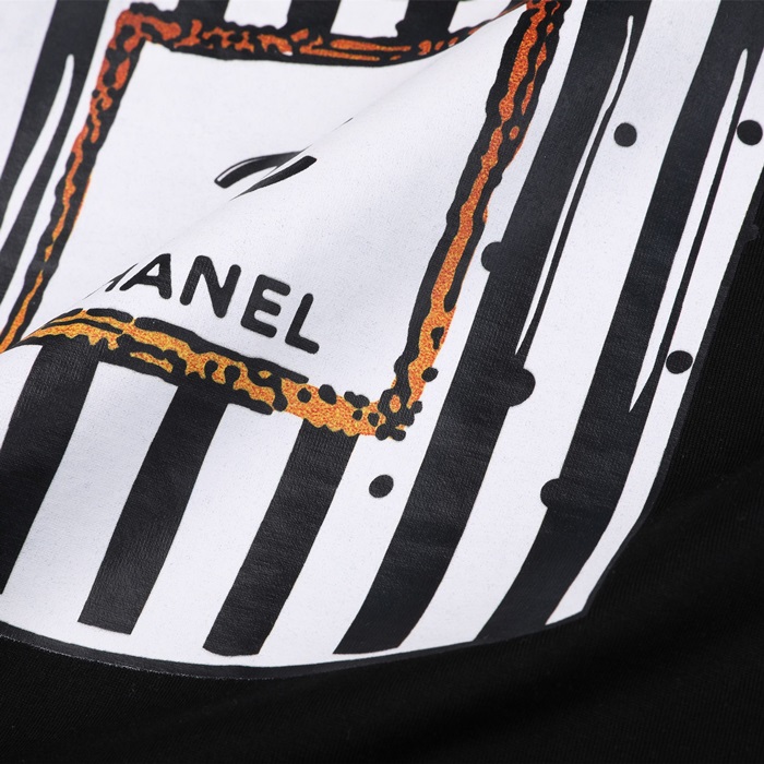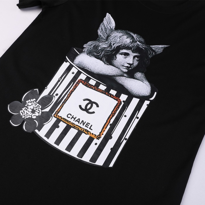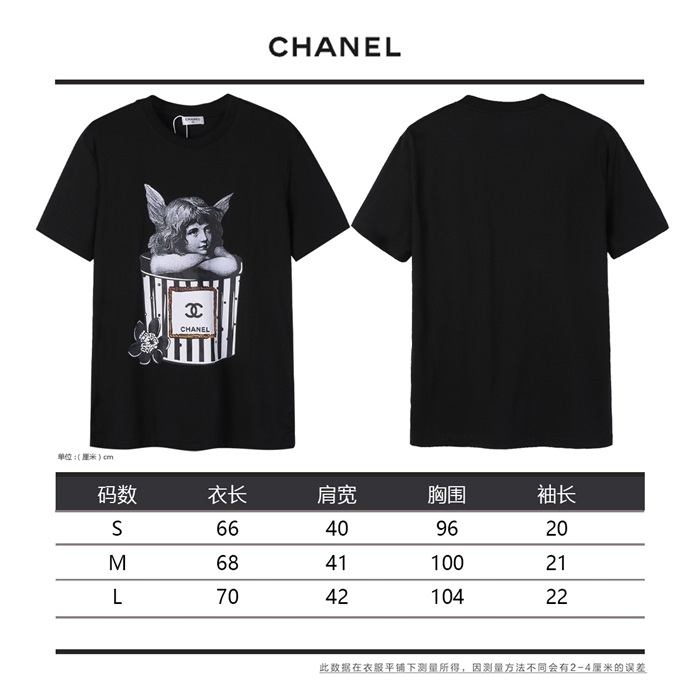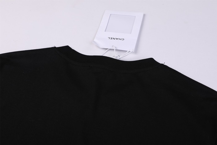 シャネルユニセックスクルーネックブラック半袖Tシャツh51