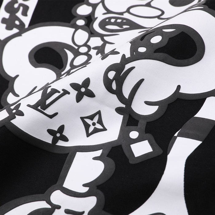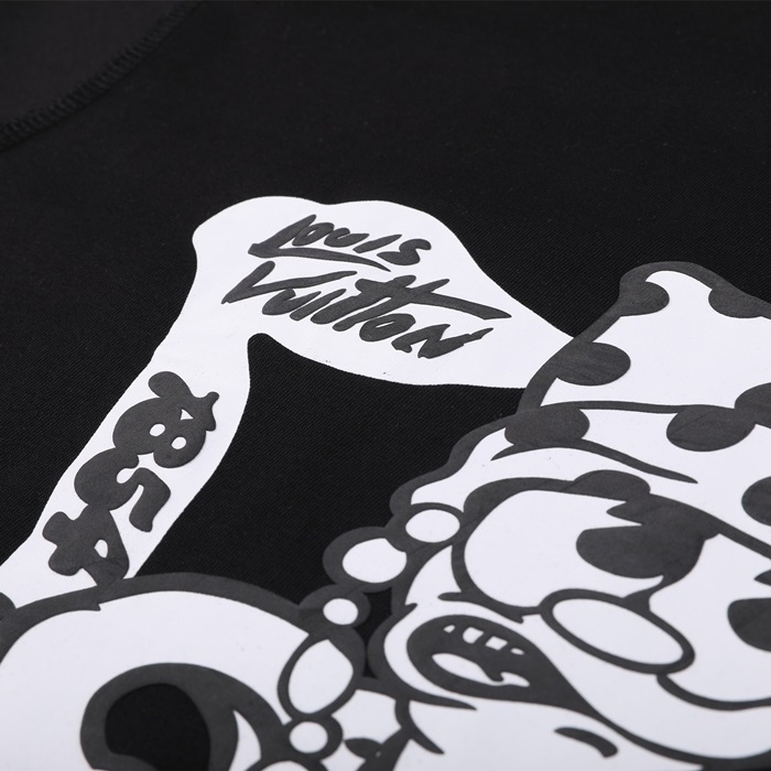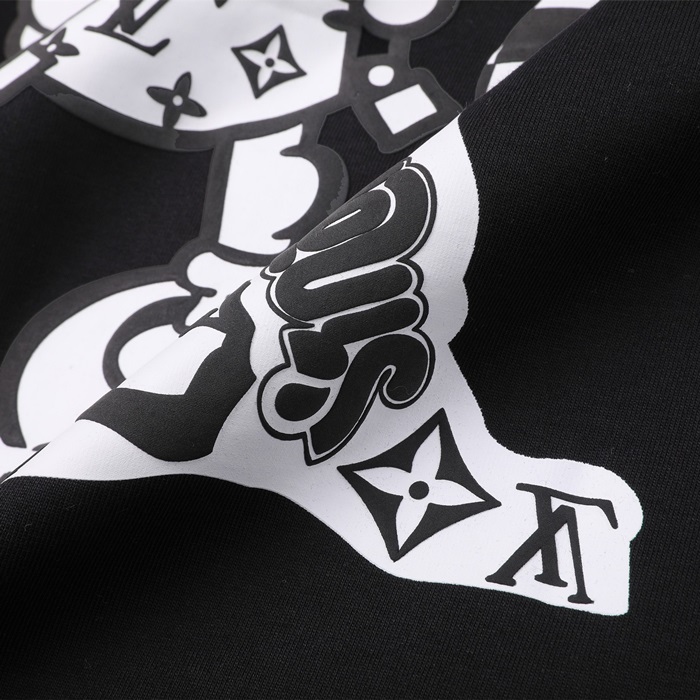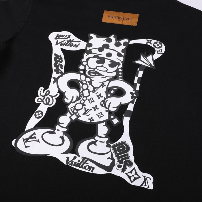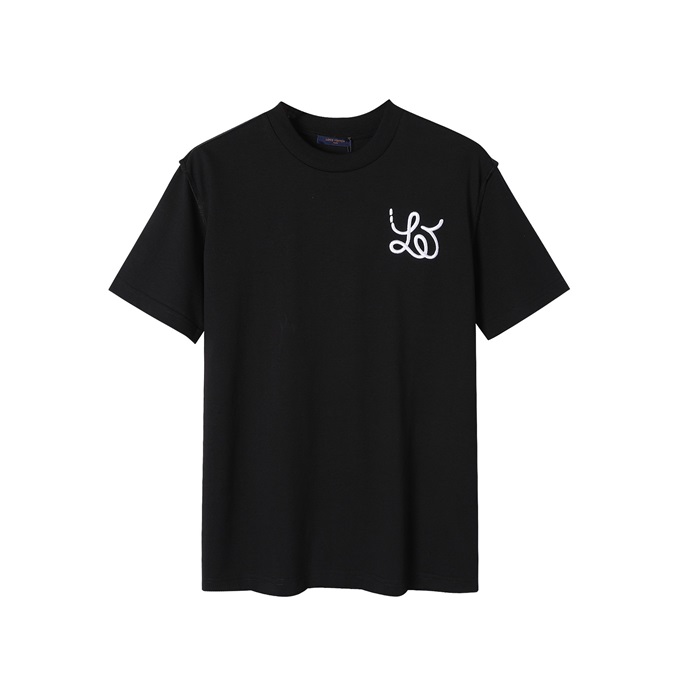 ルイヴィトンメンズブラッククルーネック半袖Tシャツv435