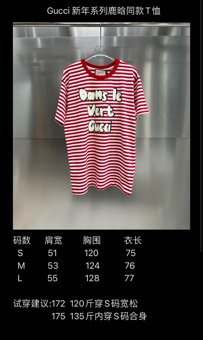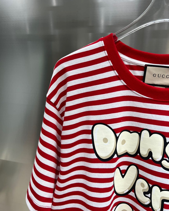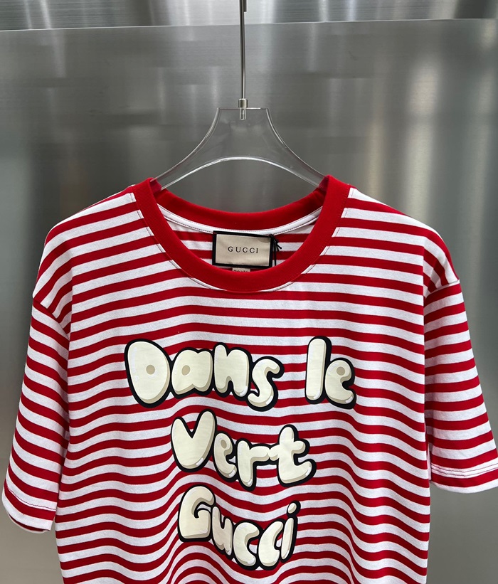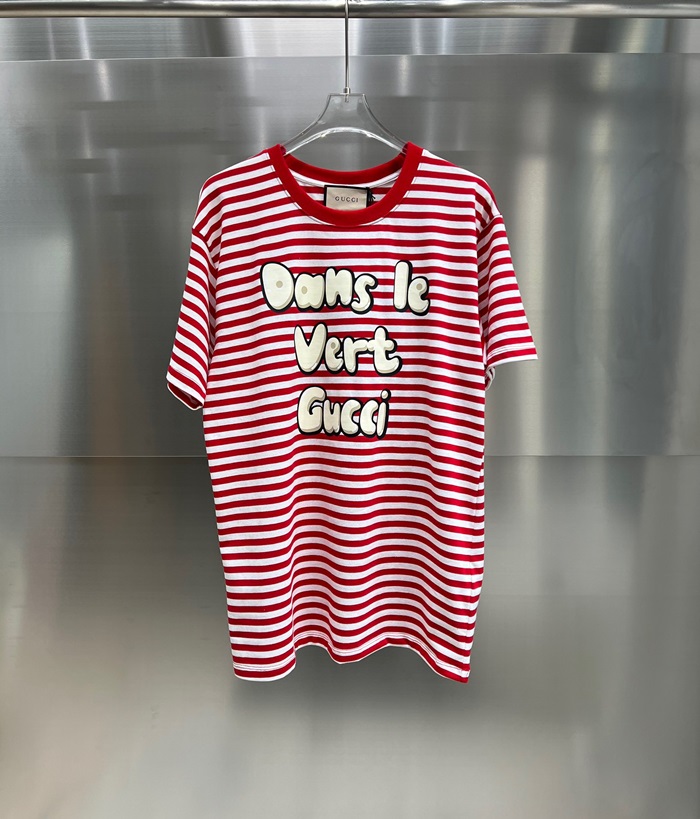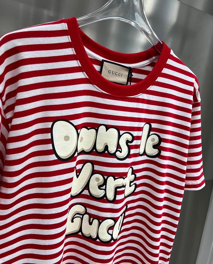 グッチユニセックスレッドクルーネック半袖Tシャツu212