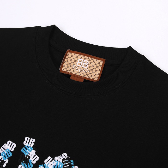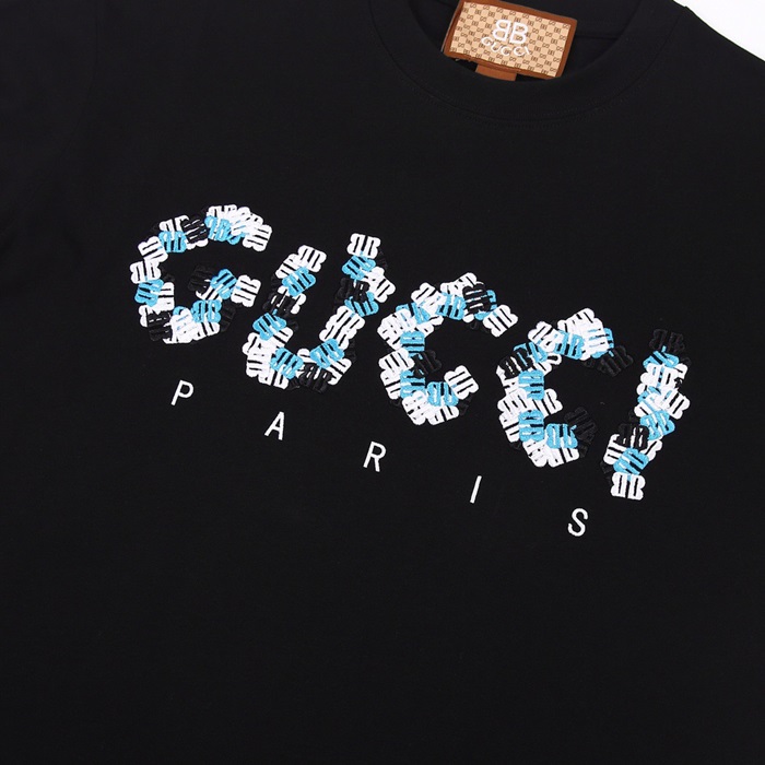 グッチユニセックスブラッククルーネック半袖Tシャツu213