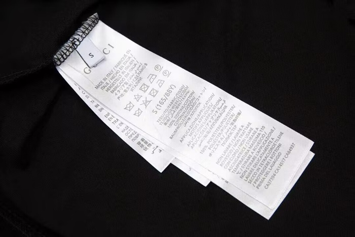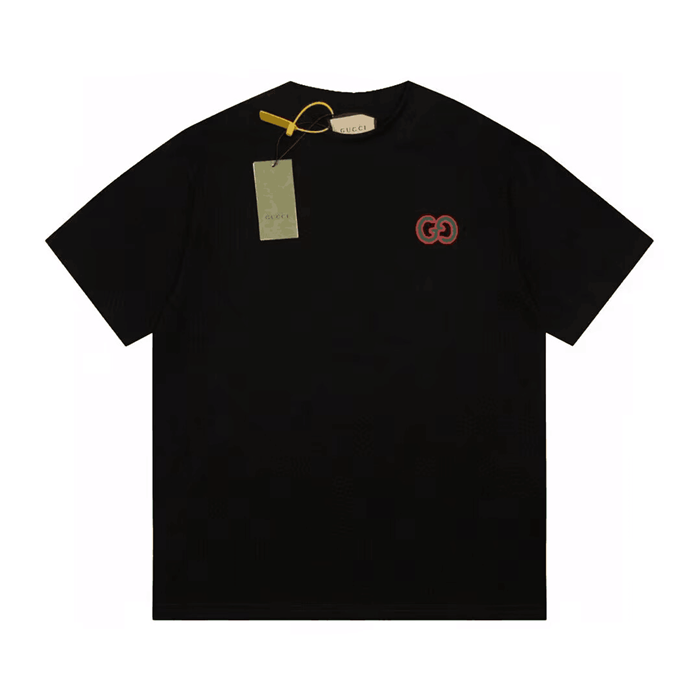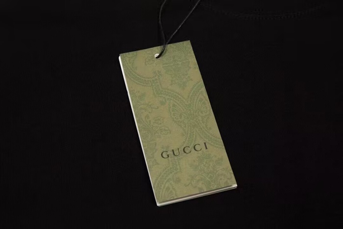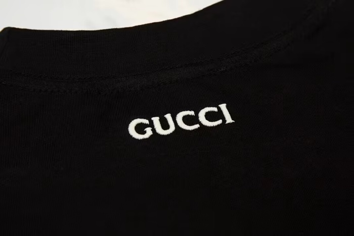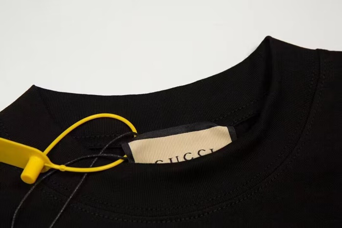 グッチユニセックスブラッククルーネック半袖Tシャツu216
