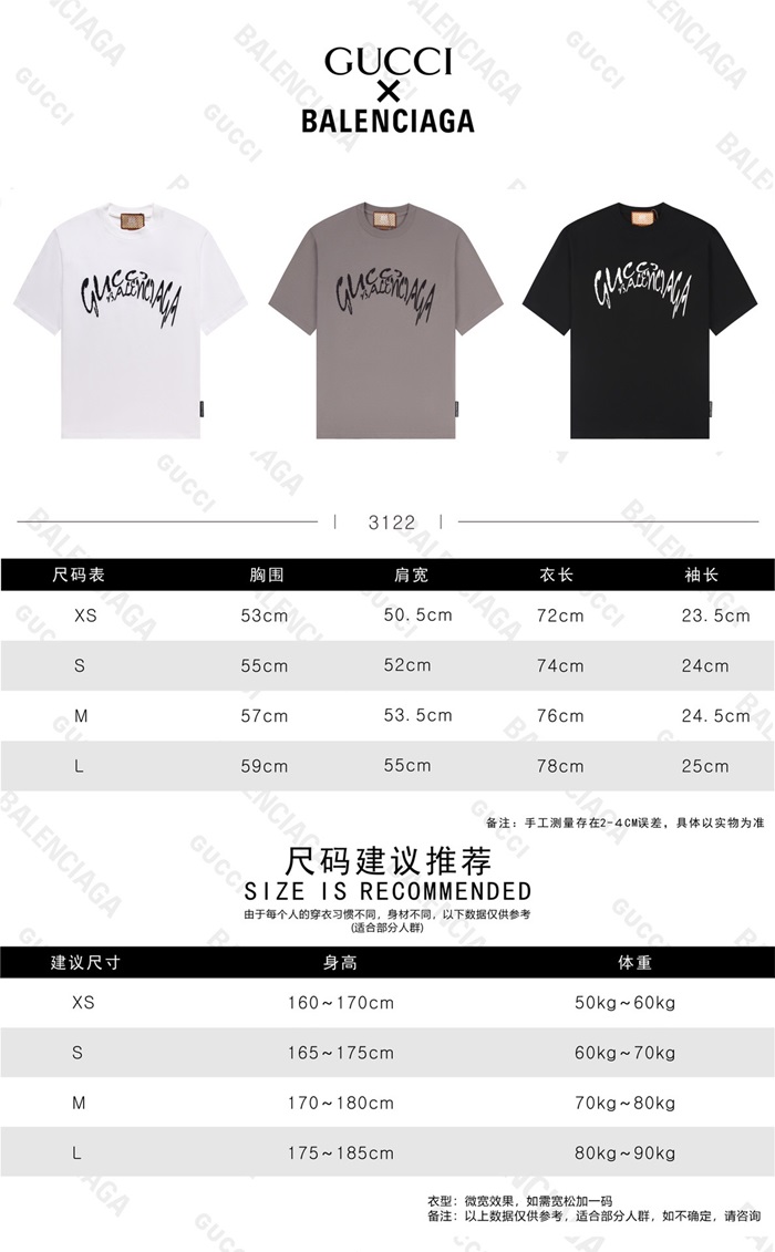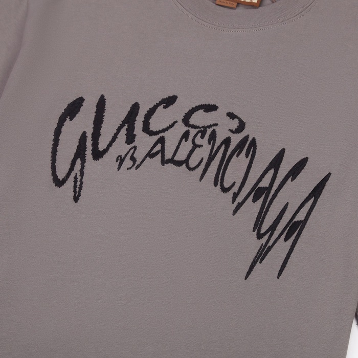 グッチユニセックスグレークルーネック半袖Tシャツu218