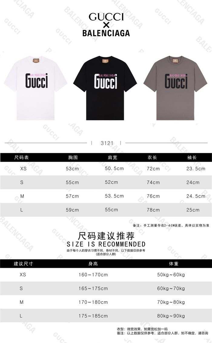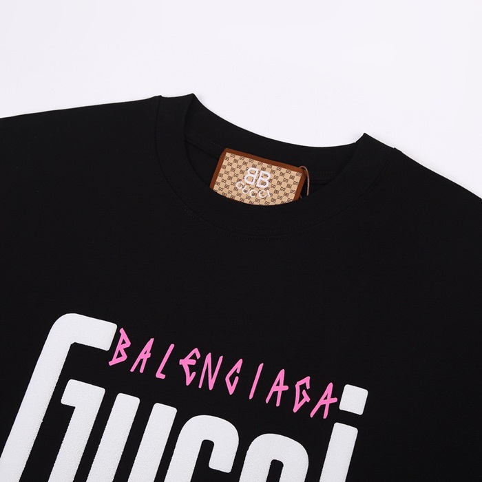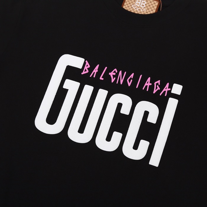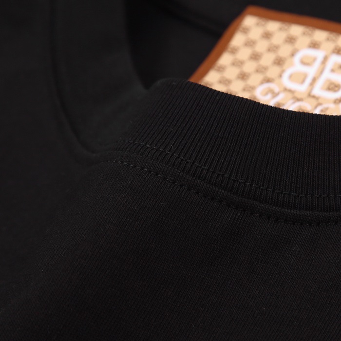 グッチユニセックスブラッククルーネック半袖Tシャツu219