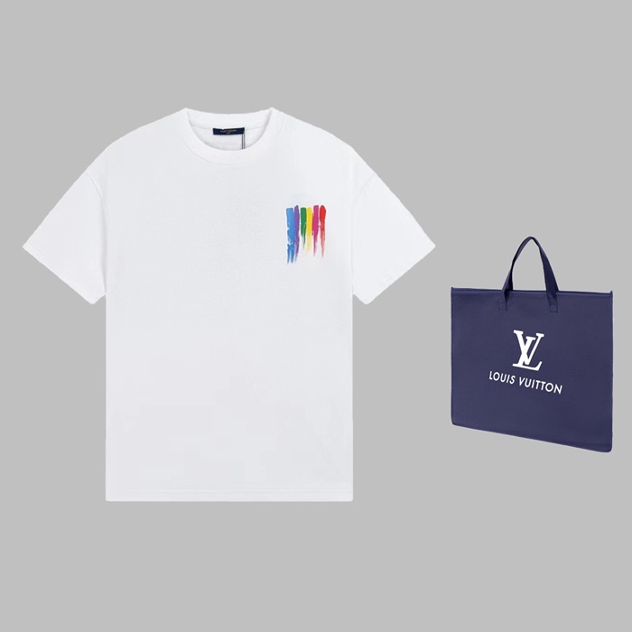 ルイヴィトンメンズホワイトクルーネック半袖Tシャツv507