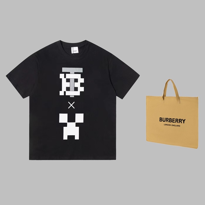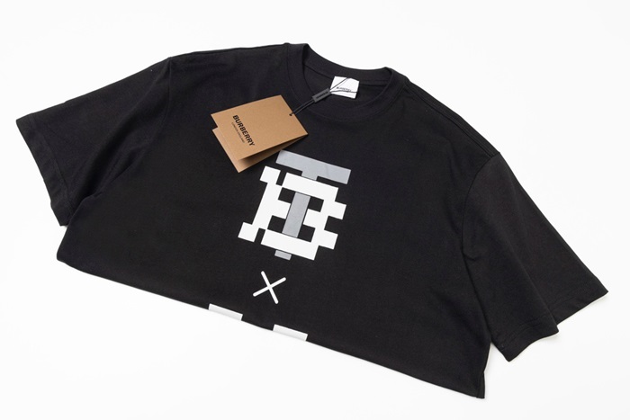 バーバリーメンズブラッククルーネック半袖Tシャツu87
