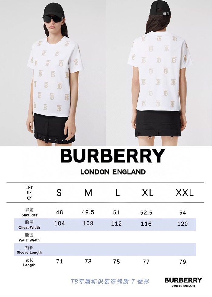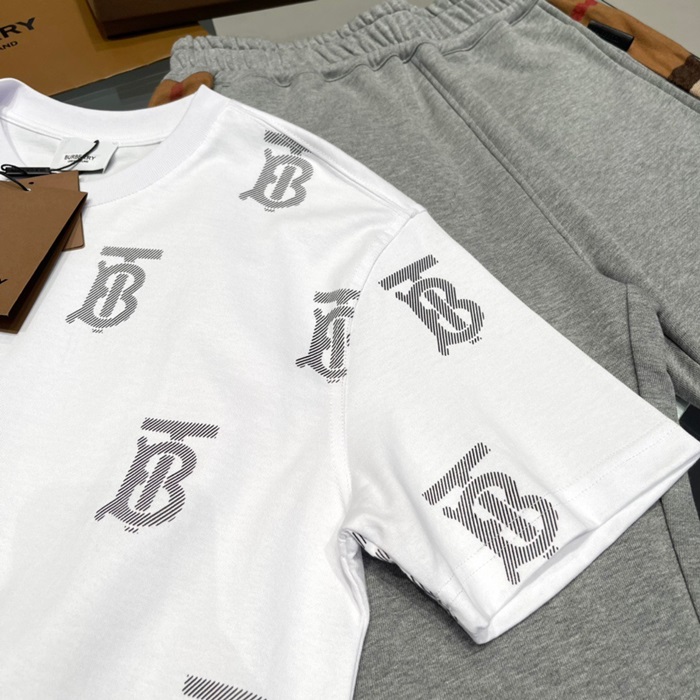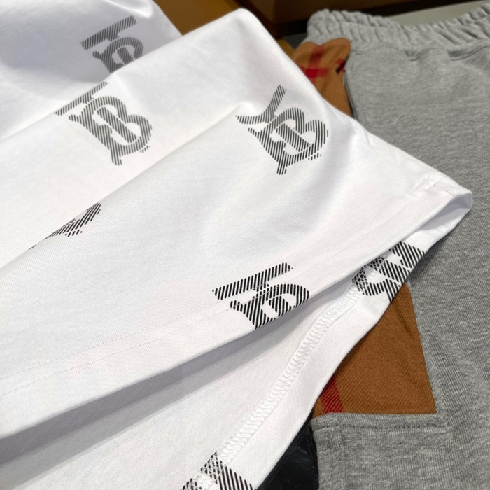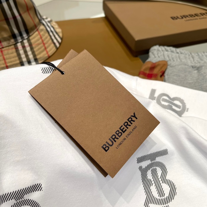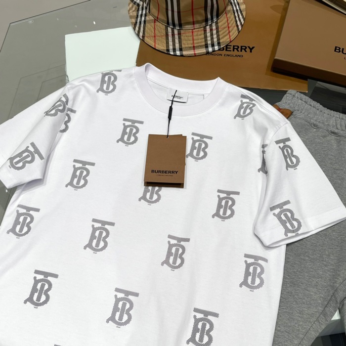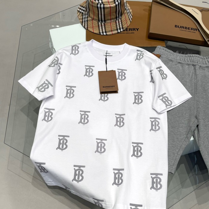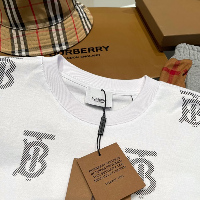 バーバリーユニセックスホワイトクルーネック半袖Tシャツu94