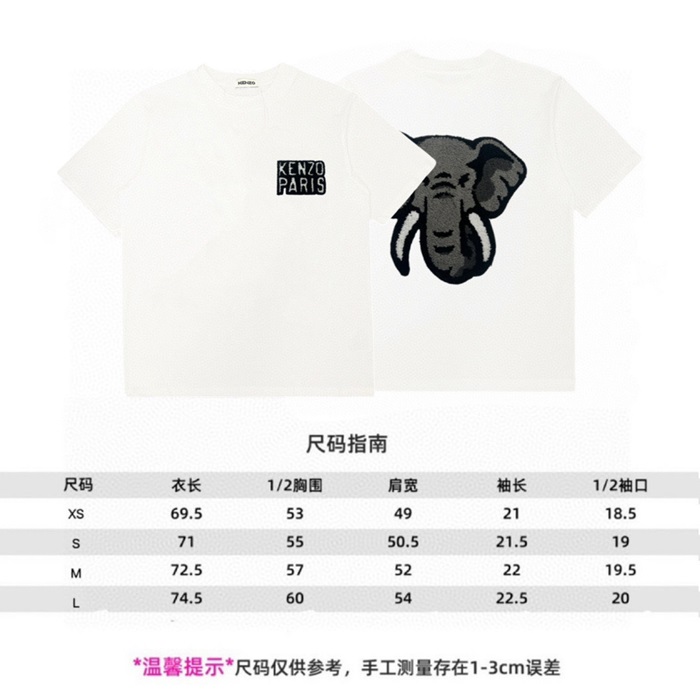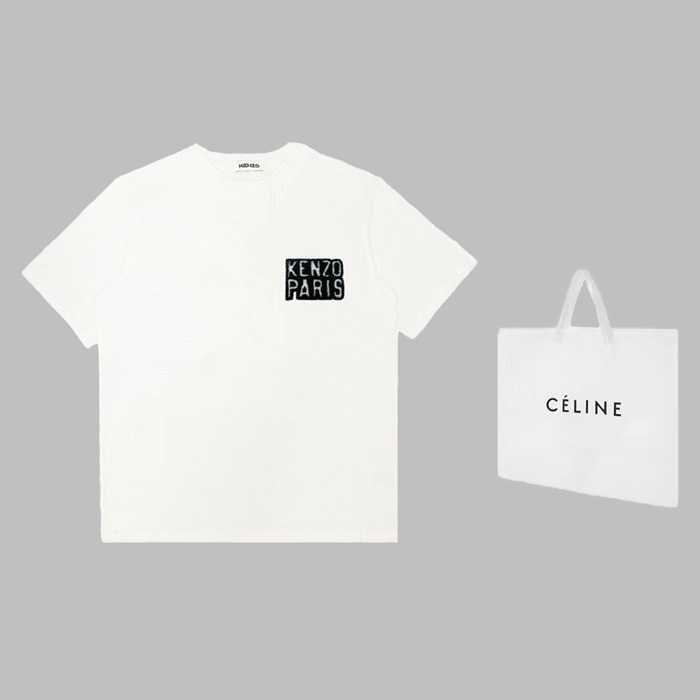 ケンゾーユニセックスホワイトクルーネック半袖Tシャツn208