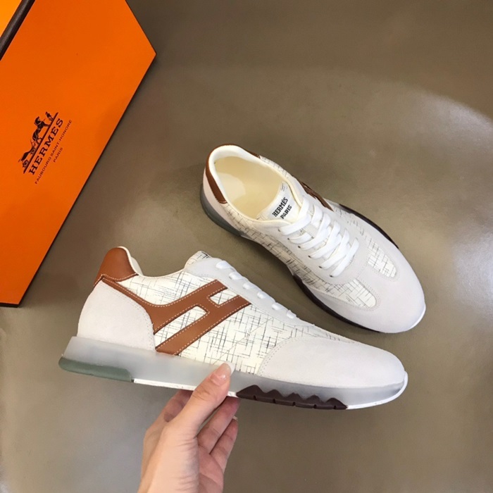 エルメスメンズキャメルスニーカーe52
