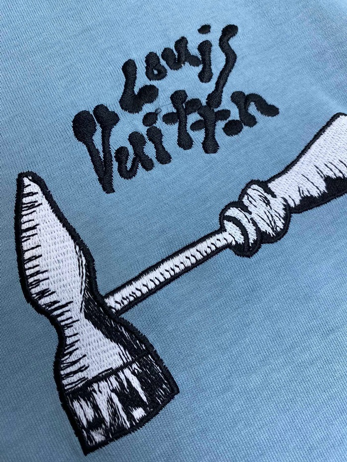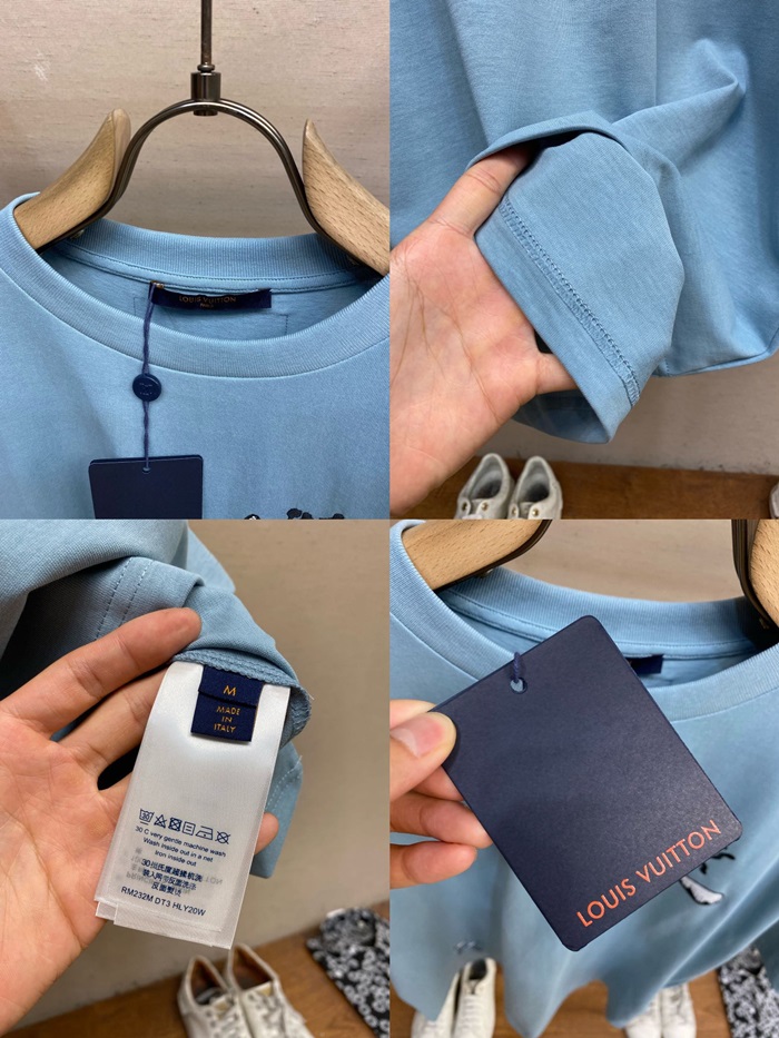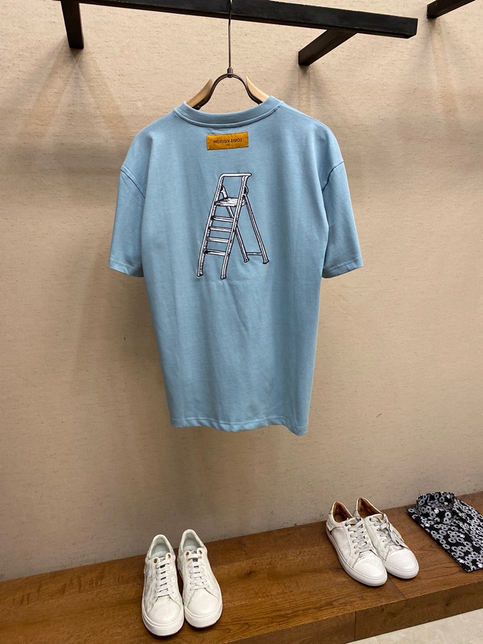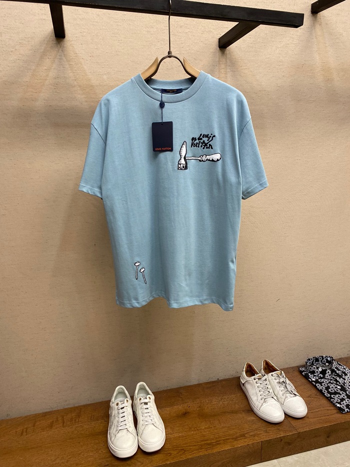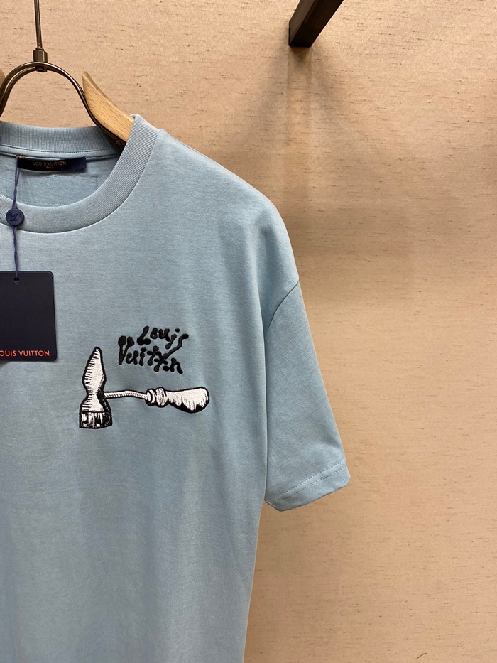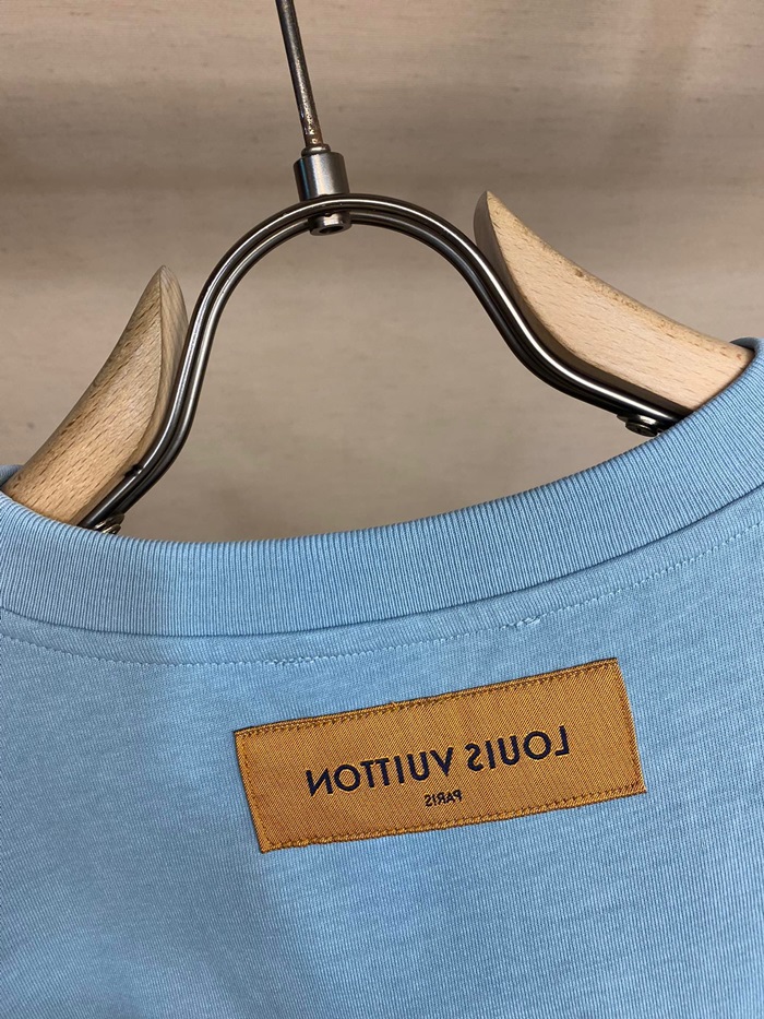 ルイヴィトンメンズブルークルーネック半袖Tシャツv523