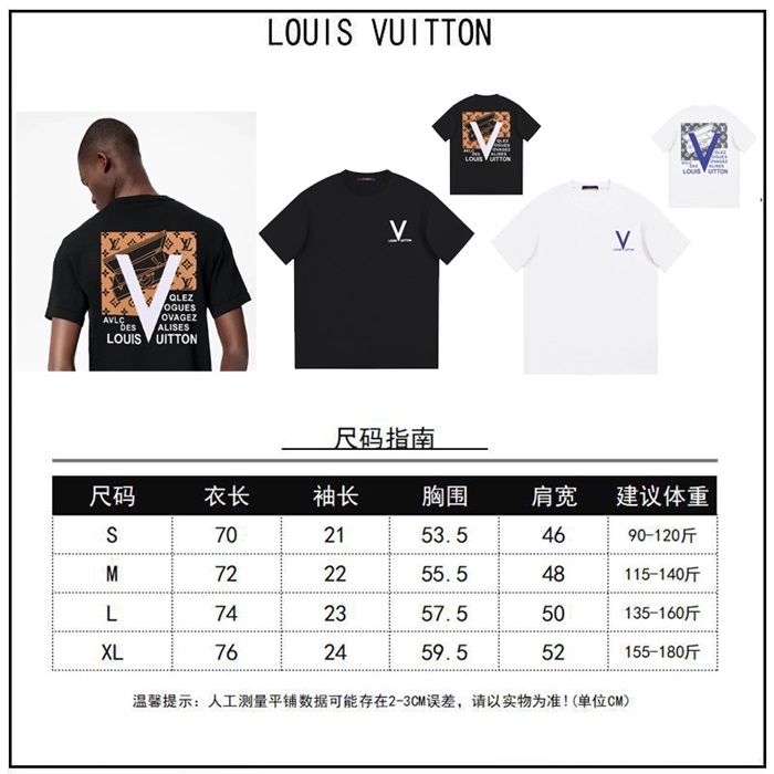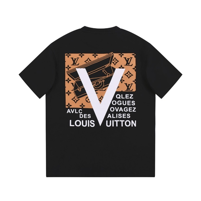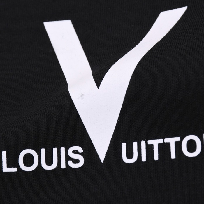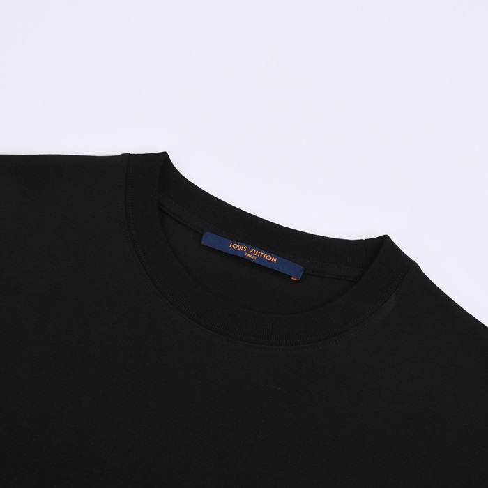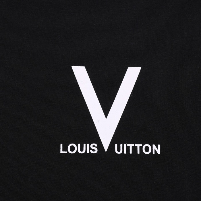 ルイヴィトンメンズブラッククルーネック半袖Tシャツv527
